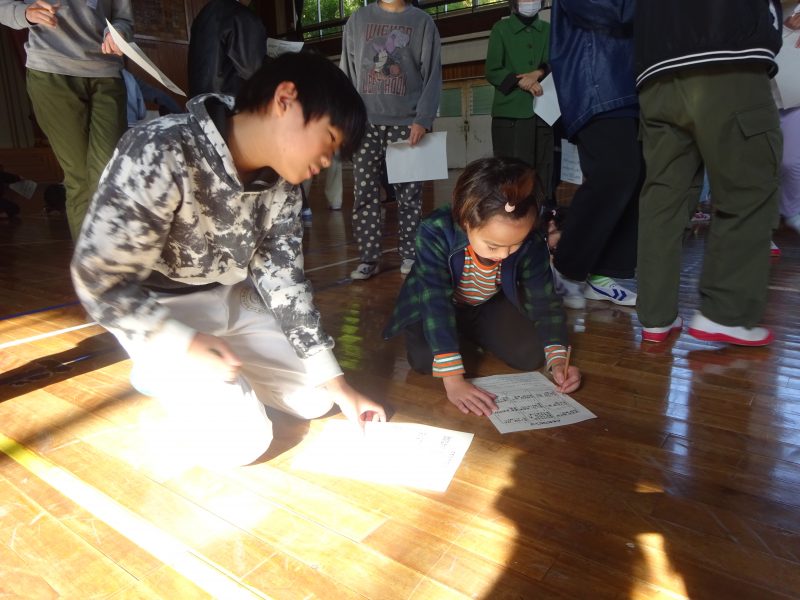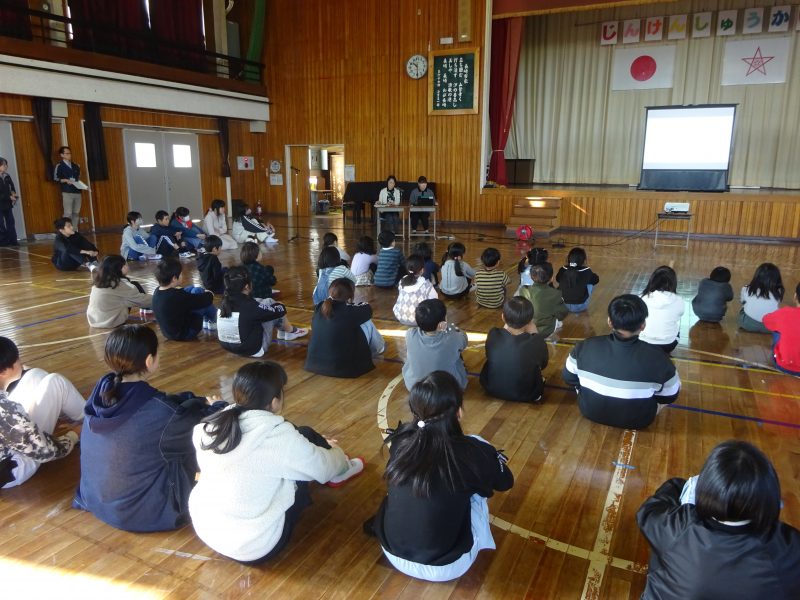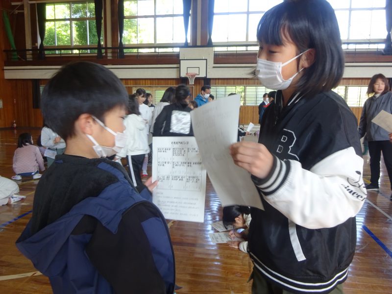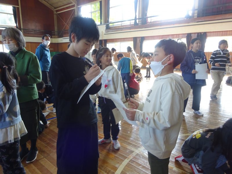 今日の朝日小【学校生活】 人権集会 【更新日】2025年12月09日 12月2日(火)、人権週間にあわせて、全校で人権集会を開きました。 はじめに、学校図書館司書の先生に、ともだちについて考えることのできる本を読んでいただきました。 なかまづくりレクリエーションでは、「ともだちビンゴ」をしました。学年を越えて話をして、初めて知ることもあったようです。 最後に「ビリーブ」を歌いました。 あたたかい気持ちになれた人権集会でした。