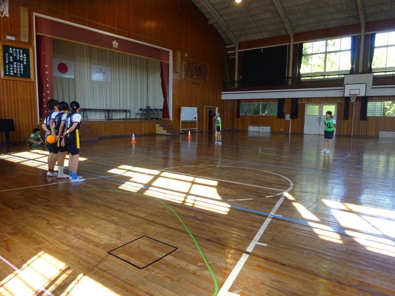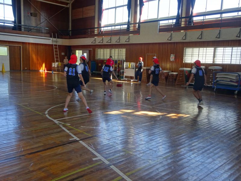 その後、全校で応援をし、手作りの応援旗を渡しました。