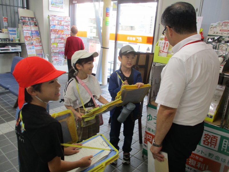 10月17日(金)、21日(火)に、2年生は生活科の「まちたんけん」で、校区内のお店や施設を訪ねました。