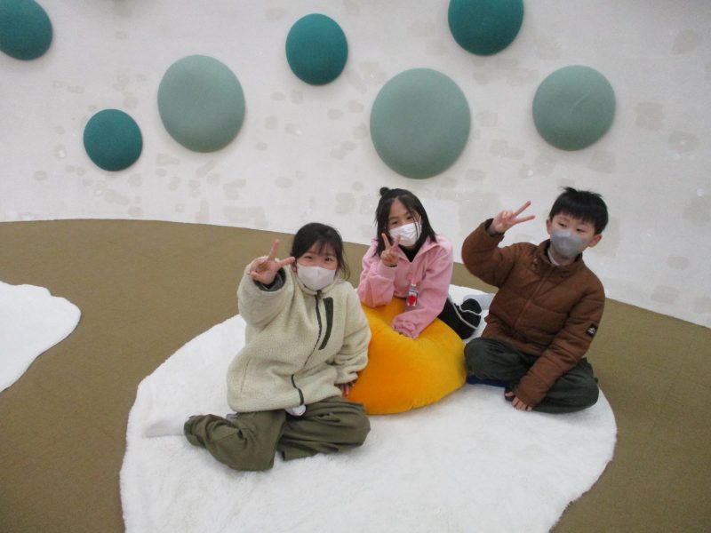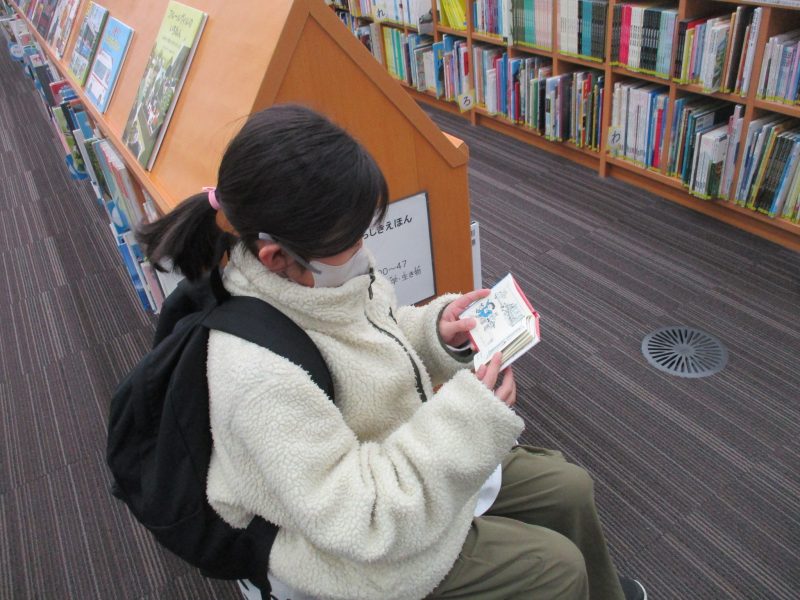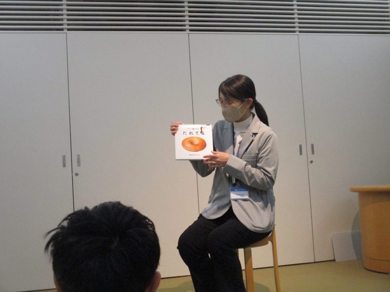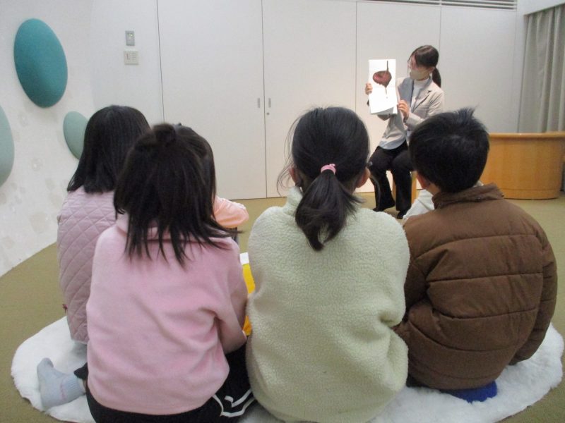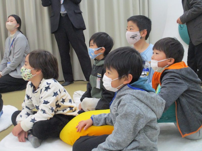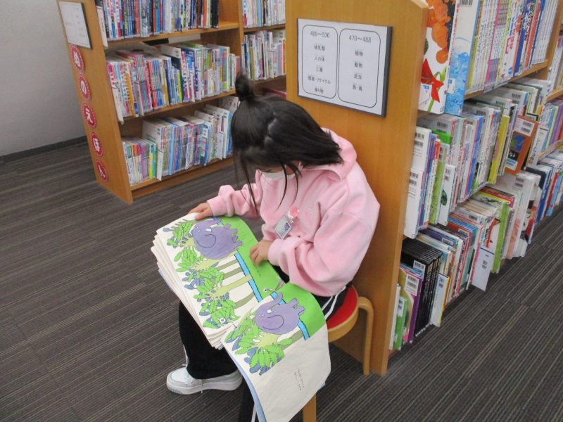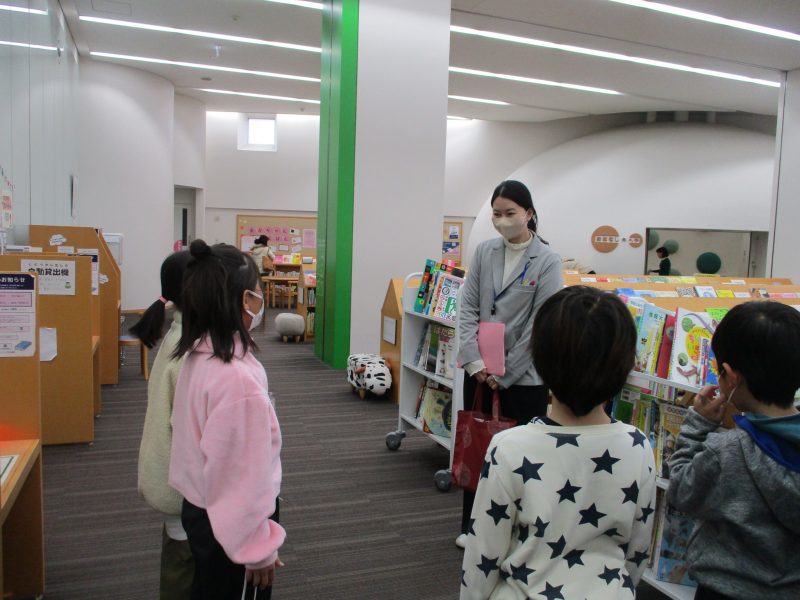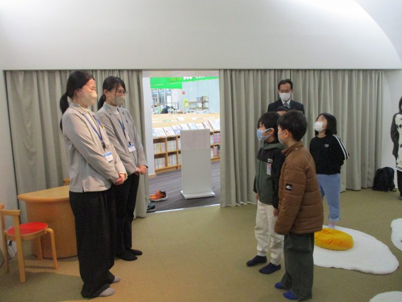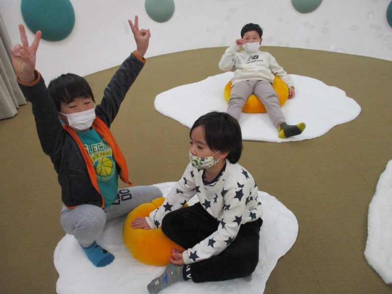 次に市立図書館に行き、バックヤードや4階書庫を見せていただきました。目玉焼きクッションの上に座って、お話を聞いている様子はとても気持ちよさそうです。