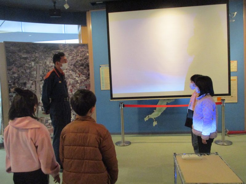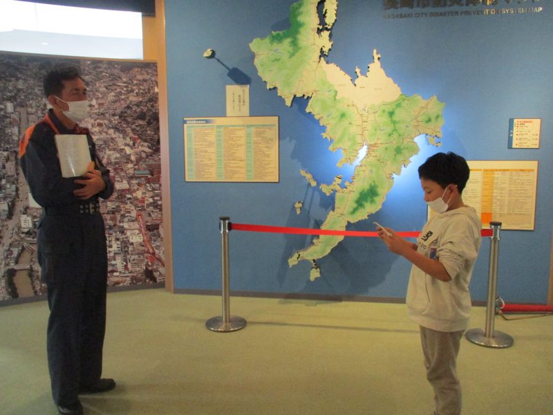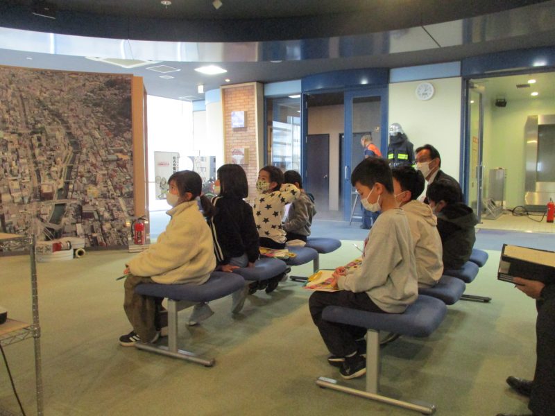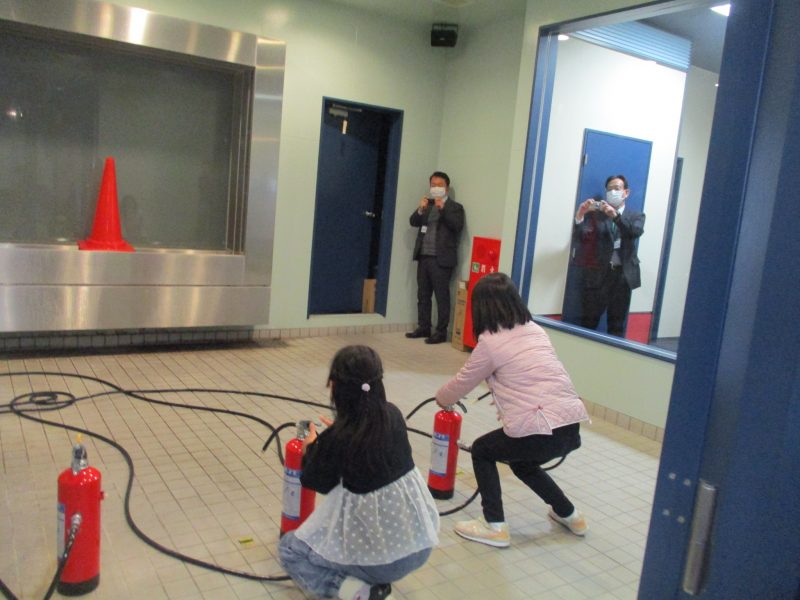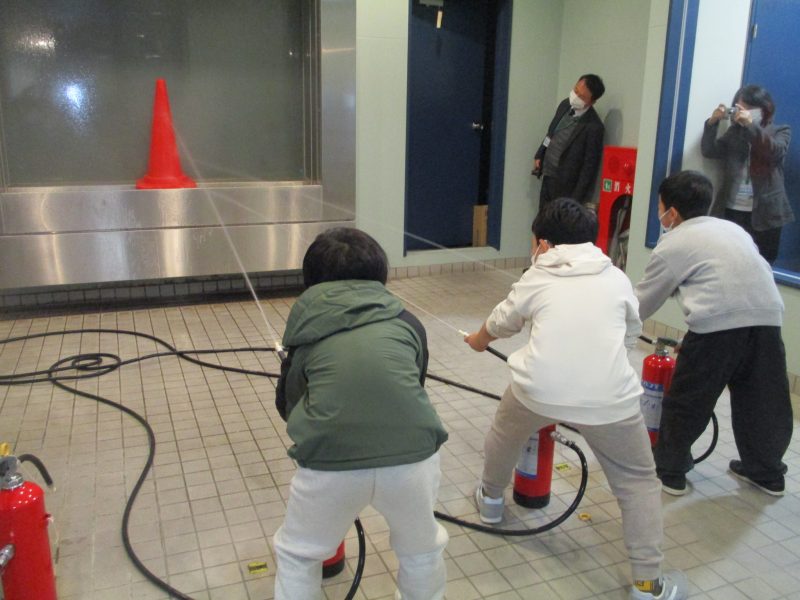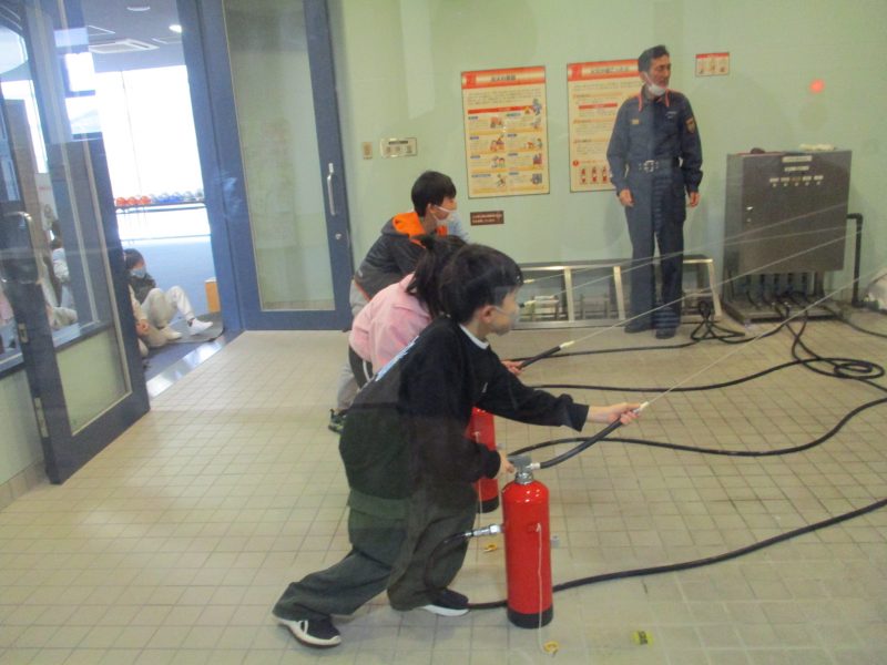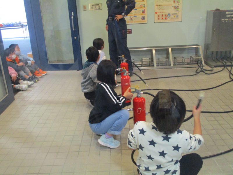 最後に市消防局に行きました。消防の仕事について話を聞いた後、煙体験、消火器体験、暴風体験をしました。