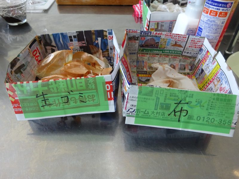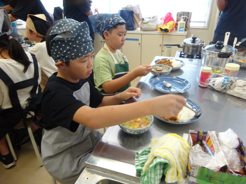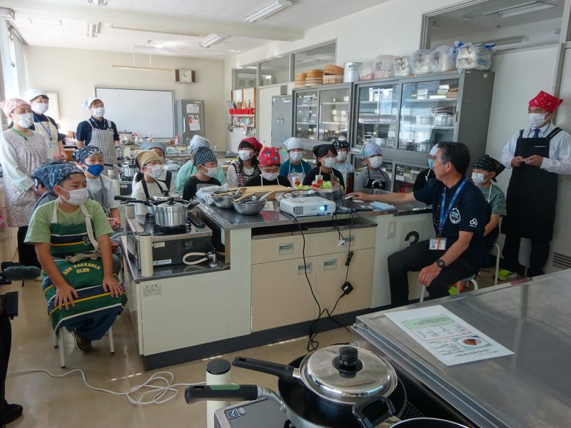 食材やエネルギーを無駄なく使用したり、食べ残しを無くしたり、片付けにも一工夫する、地球に優しい調理方法について学びました。