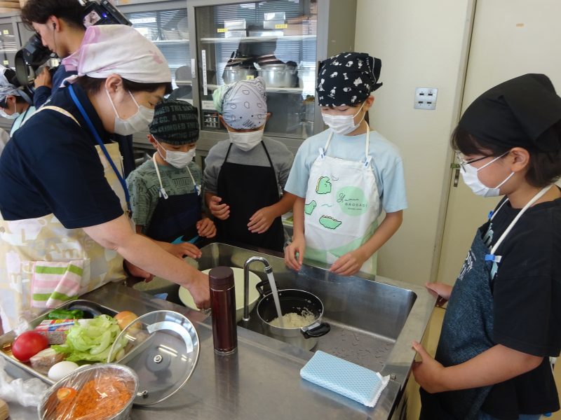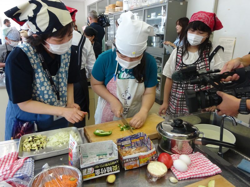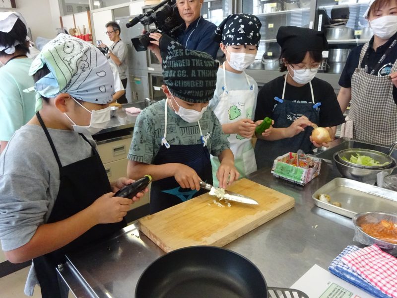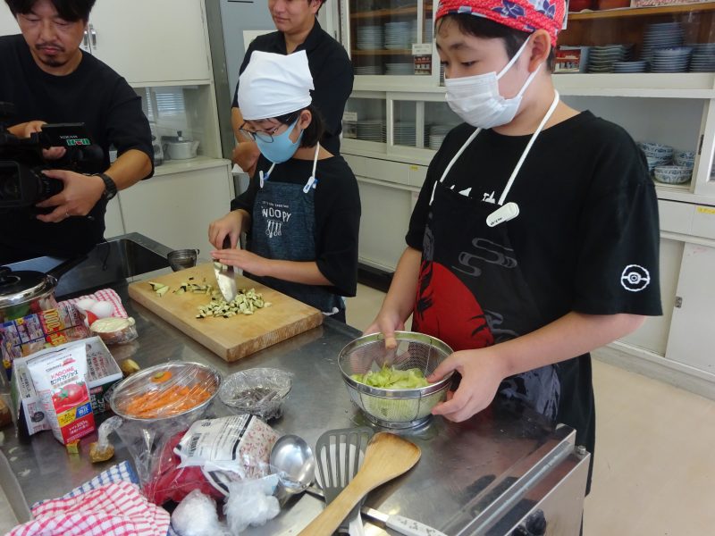 この日は、テレビ局の取材が3社も入り、少々緊張気味の様子でスタートしましたが、調理に夢中になり、手元が撮影されていても平気になった子どもたちでした。