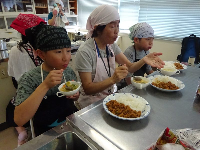 ニンジンの頭の部分も、しょうがの皮も、玉ねぎの軸も、みんな刻んで煮込めばとてもおいしく食べることができると知った子どもたち。
