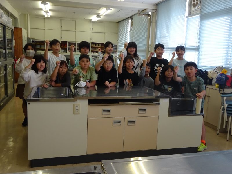 10月21日(火)、総合的な学習の時間に環境学習を行っている4年生と、家庭科で先日マイエプロンを仕上げたばかりの5年生は、西公民館の調理室をお借りし、西部ガス長崎株式会社さんの指導で、エコ・クッキングを体験しました。