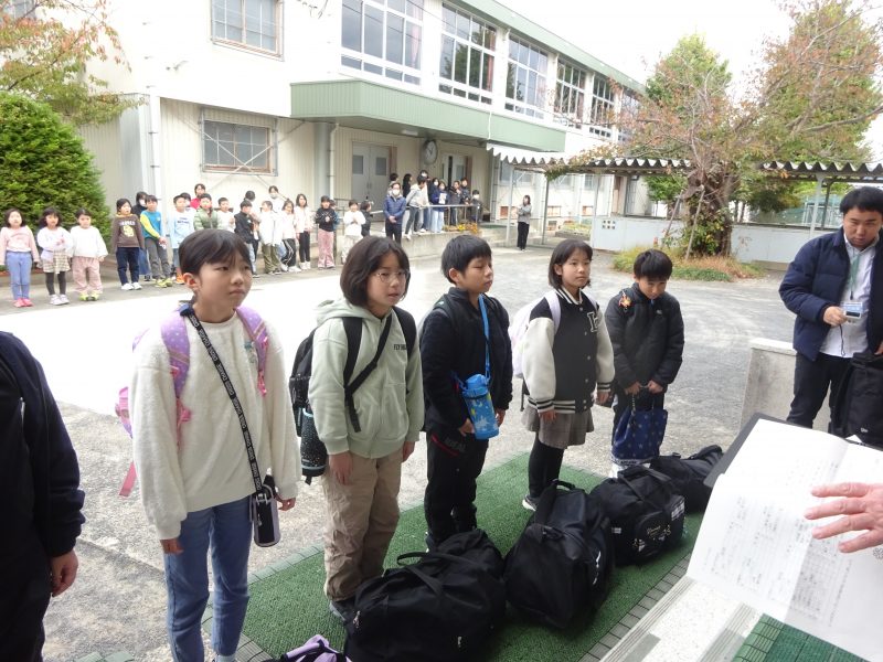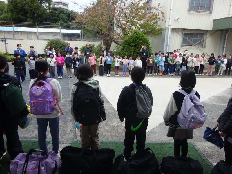 出発式では児童代表がめあてを述べ、全校に見送られて出発しました。