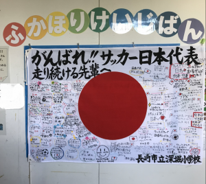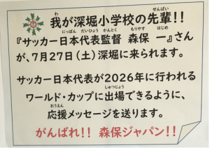 最後に、サッカー日本代表が2026年に行われるワールド・カップに出場し、活躍できるように応援メッセージを送りました。