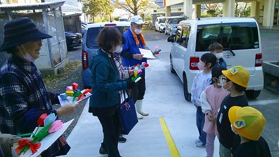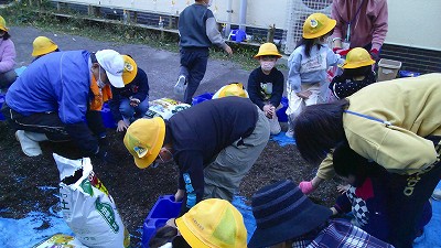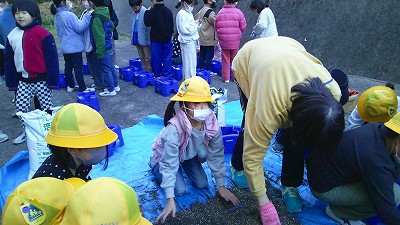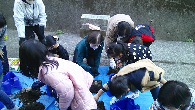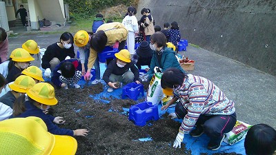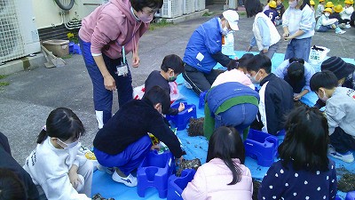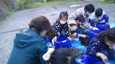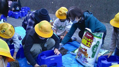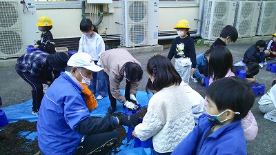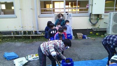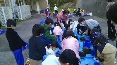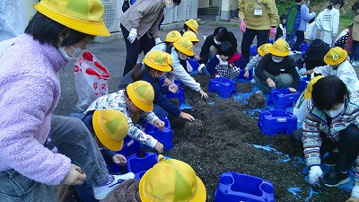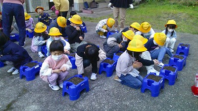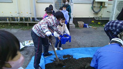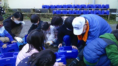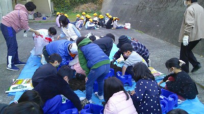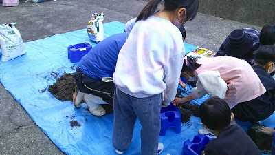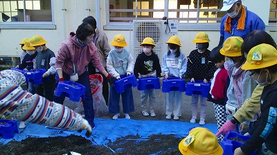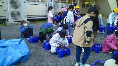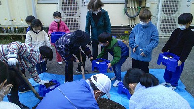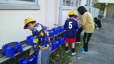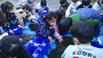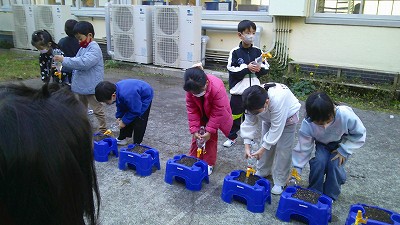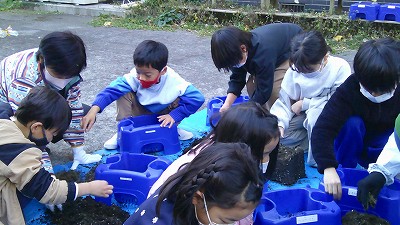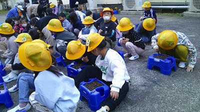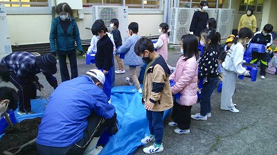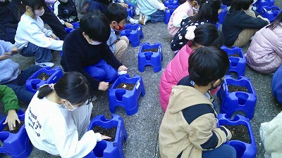 1年生【学校生活】 チューリップの球根植え(1年生) 【更新日】2025年12月10日 12月10日(水)1年生がチューリップの球根を植えました。 福田サポーターはたさく隊5名の皆様にご協力いただき、無事に作業を終えました。 はたさく隊の皆様、ありがとうございました。 これからしっかりお世話をして、春には美しく色とりどりのチューリップの花が開くことでしょう。
