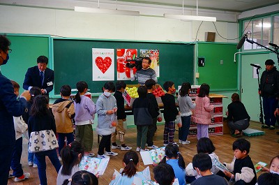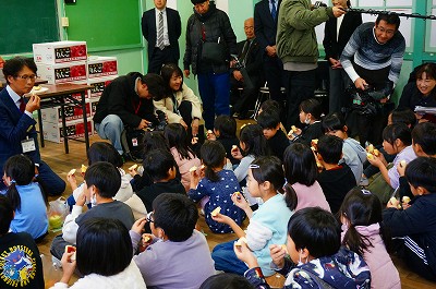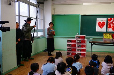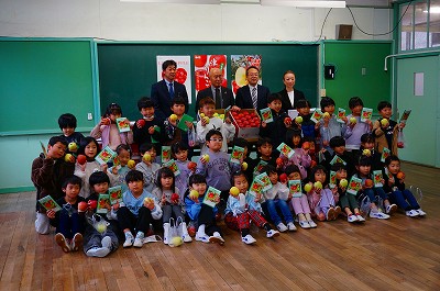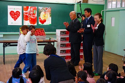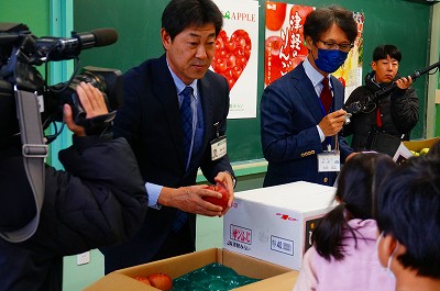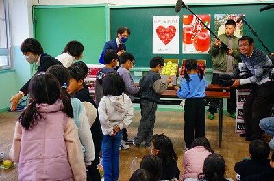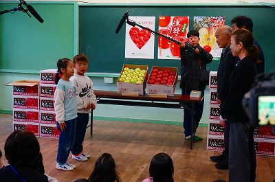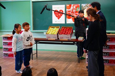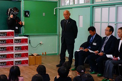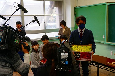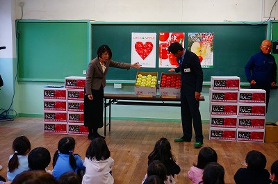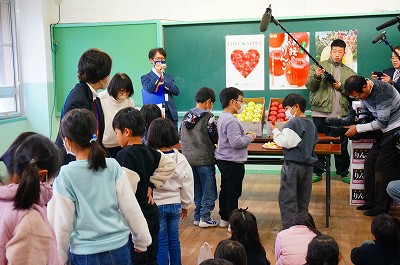 1年生【学校生活】 リンゴの贈呈式その2(1年生参加) 【更新日】2025年12月10日 12月4日にいただいたリンゴは、各ご家庭の食卓にあがったことと思います。 お世話してくださった長崎市中央卸売市場様より、贈呈式の画像を送っていただいたので、その2として掲載します。