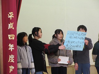 全般【学校生活】 保健集会 【更新日】2024年12月18日 12月18日(火)に保健集会を行いました。 保健委員会のみなさんが、劇で、「かぜやインフルエンザの予防」「虫歯の予防」「ノーメディアの推奨」についておもしろおかしく(!?)伝えてくれました。 2学期も残り1週間です。かぜやインフルエンザの予防に努めます。