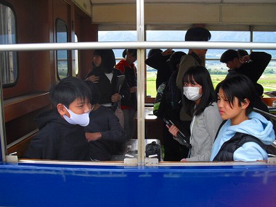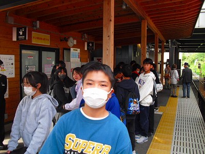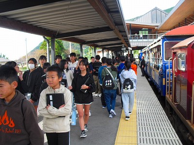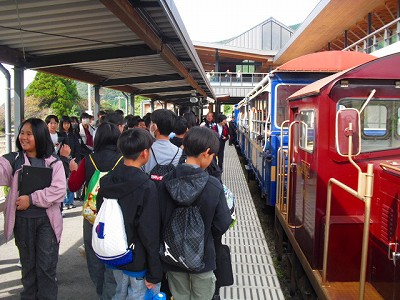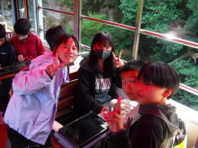 6年生【学校生活】 修学旅行のスナップ写真Vol.1 【更新日】2025年11月05日 10月30日31日に実施した修学旅行のスナップ写真を掲載します。 画像が多いため、数回に分けてアップします。 今回は、出発からトロッコ列車乗車体験、「あそ望の郷くぎの」での昼食までです。