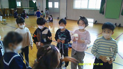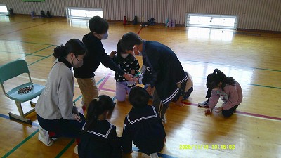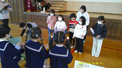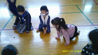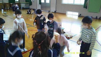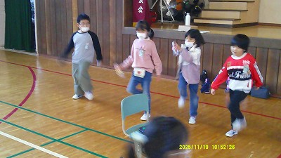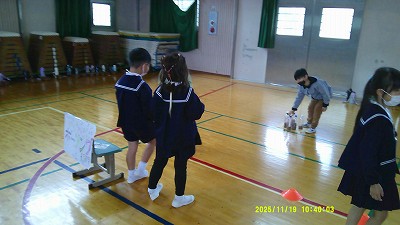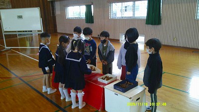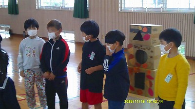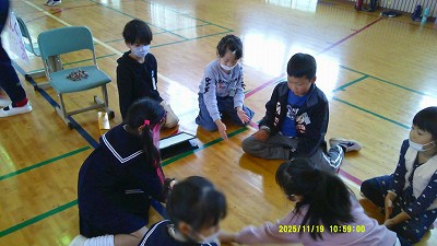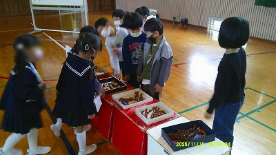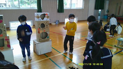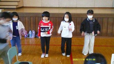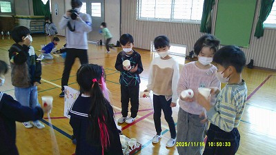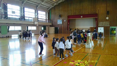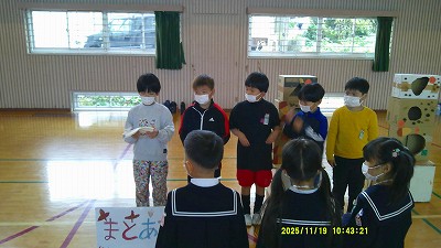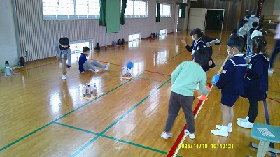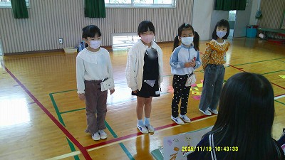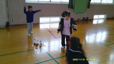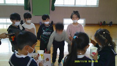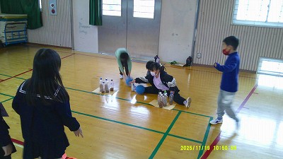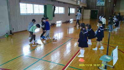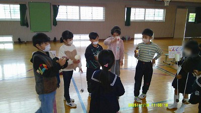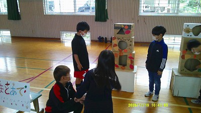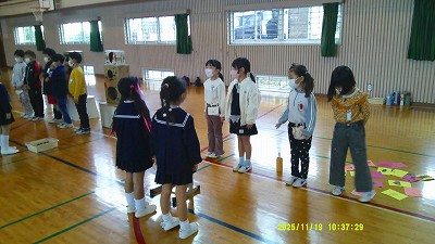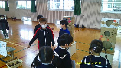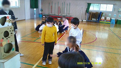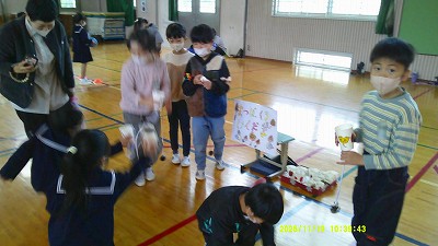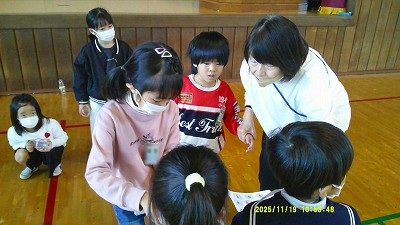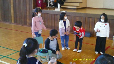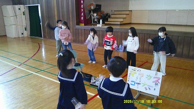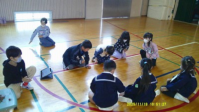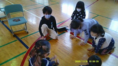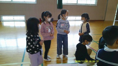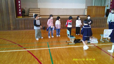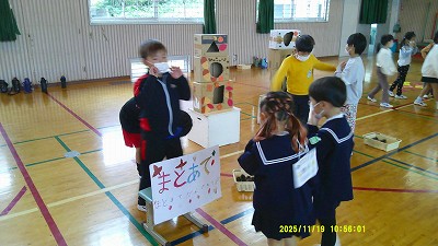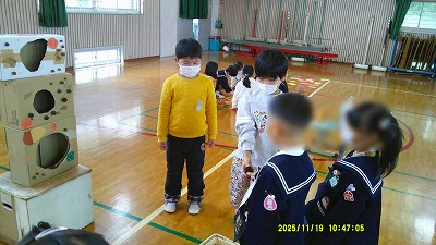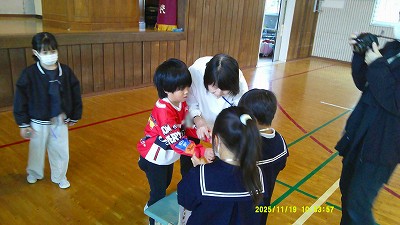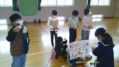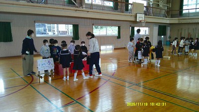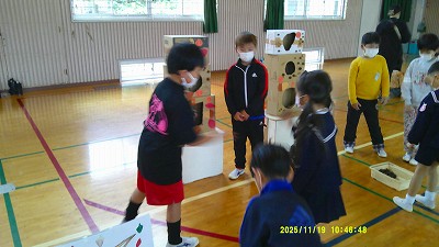 1年生【学校生活】 秋のなかよし交流会(1年生とくるみ西幼稚園年長児) 【更新日】2025年11月20日 11月19日(水)幼保小連携の取組として、「秋のなかよし交流会」を実施しました。 1年生がグループに分かれて、幼稚園の子どもたちに楽しんでもらうためにしっかりと準備練習を重ねてきました。 始め終わりの挨拶や遊び方の説明、途中の言葉掛けなどが上手にできていて、園児の皆さんは喜んでくれたようです。 さすが先輩です!