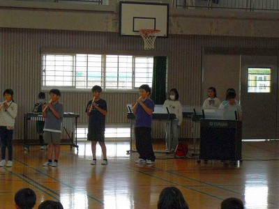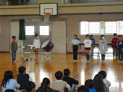 3年生【学校生活】 3年生ミニ小音会出場を励ます会 【更新日】2025年11月11日 インフルエンザの流行によって、3年1組、2組が出場する長崎市小学校音楽会に向けた励ます会を中止しました。 貴重な人前でのリハーサルの機会が無くなったのですが、昨年出場した4年生が3年生のためにミニ励ます会を開いてくれました。 やや緊張しながらも、3年1組2組とも大変上手に演奏できました。 4年生は、昨年の経験をふまえた上で、心のこもった励ましの言葉と寄せ書きをプレゼントしました。