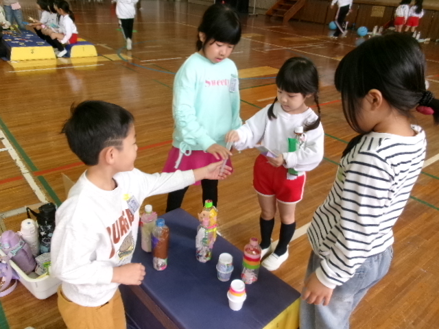 1ねんせい【学校生活】 1年生 ようこそ晴海台小学校へ 【更新日】2025年12月10日 1年生が、幼稚園児を招待して交流会を行いました。 これまで、たくさん準備をしてきました。各ブースに分かれてのゲーム大会は、モノづくりやルール説明の仕方など、試行錯誤の連続だったようです。 この、相手意識をもった学習が、心の成長につながっています。 このような交流を通して、相手が喜ぶ顔を見たり、楽しかったと感想を聞いたりすることで、自己肯定感を培っていきます。 2年生から招待されて交流した学習を参考に、1年生も小学校の先輩として、真剣に活動する姿が見られました。うれしいです。