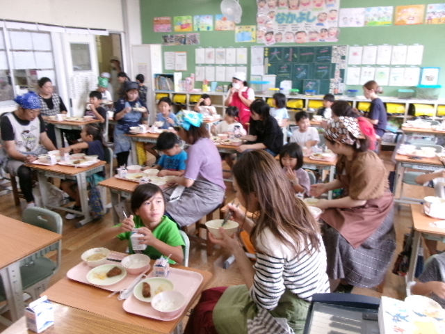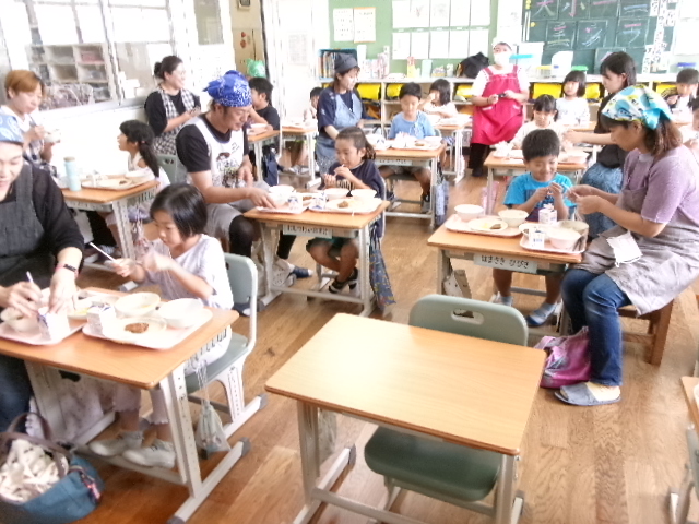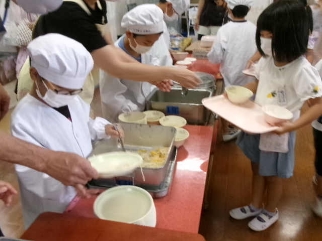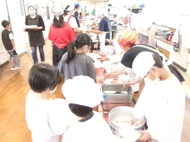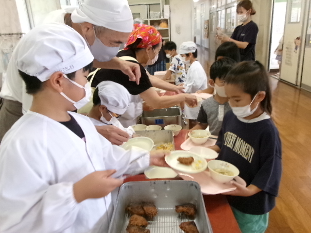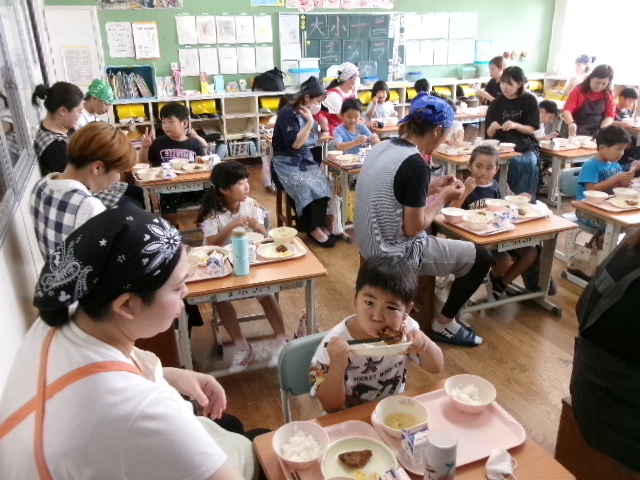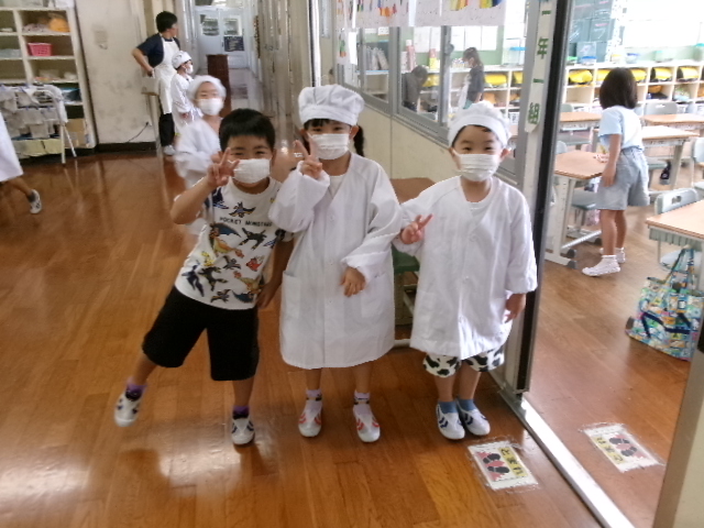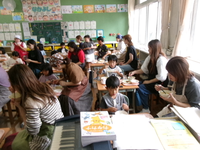 1ねんせい【学校生活】 10月8日の1年生です。 【更新日】2025年10月08日 今日は、親子給食でした。早くから準備をしようと、30分前から着替える姿に感心しました。子どもたちは、着替えも慣れていて、時間がかかりません。また、配膳も上手でした。保護者の皆様には、たくさん来校していただき、ありがとうございました。 子どもたちは、いつもよりおしゃべりも少なく、てきぱきと動いていました。成長著しい1年生です。