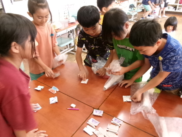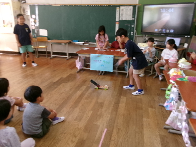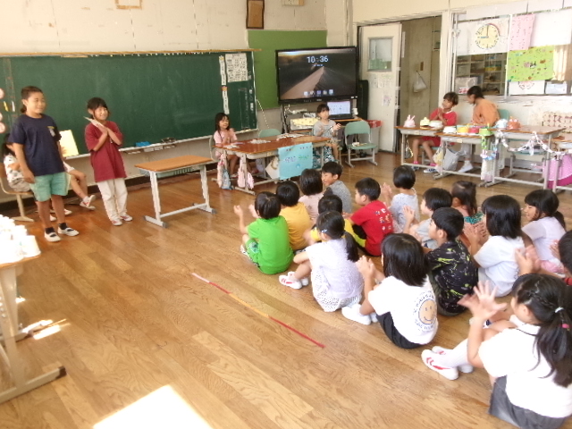 2年生【学校生活】 2年生 ようこそ1年生 【更新日】2025年10月10日 今日は、1年生を招待しての学習です。 これまだたくさんの遊び道具をつくって準備してきました。誰かのためを思って取り組む活動は、ワクワクします。また、作ったもので喜んでくれている1年生の表情を見るだけで、受け入れる2年生も笑顔になります。 子供たちは、「いい顔・いい声。いい心」をもって、また一歩、成長できたと思います。 ありがとう。
