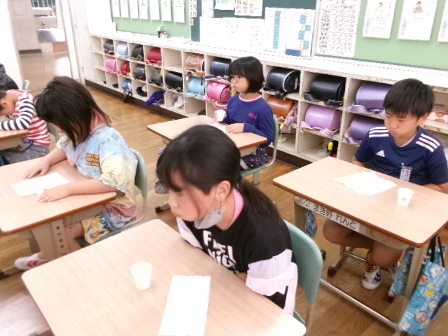 3年生【学校生活】 3年生 フッ化物洗口 【更新日】2025年10月27日 3年生は、うがいの前にお茶を飲み準備万端でした。 誰もおしゃべりしないで、静かにうがいをすることができます。 朝の時間も、運動場で仲よく楽しんでいます。 子どもたちの読書量も増えてきています。秋の充実した時間を過ごしてほしいと願ています。