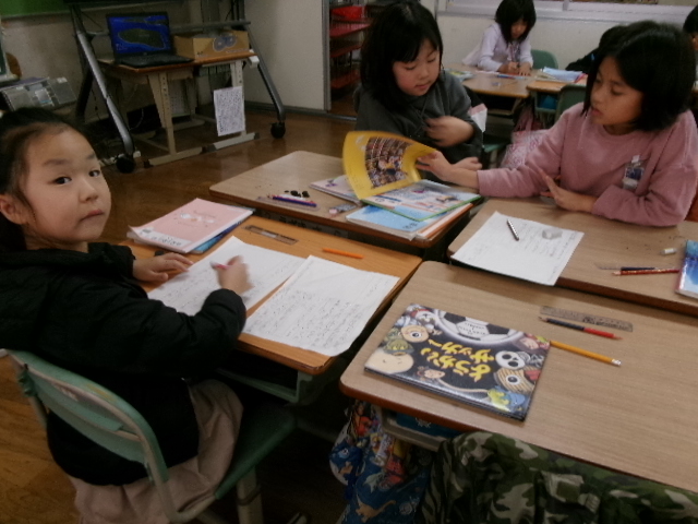 友達に、読んだ本を紹介するためには、自分が、本の内容を正確に理解する必要があります。みんな真剣に読んでいました。