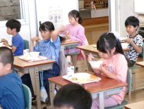 3年生【学校生活】 3年生 増やします。 【更新日】2024年05月16日 3年生になると、食べる量もだんだん増えてきます。配膳が済んで食べ始めると、先生から 「まだ小さいおかずがたくさん残っています。」と、声がかかります。 子どもたちは「これうまっ。」と言って、おかずを増やしていました。 食べず嫌いをなくすため、一度食べてみてから、おかわりするか否かを決めています。 これが、食品ロスや環境問題を考えるチャンスとなります。