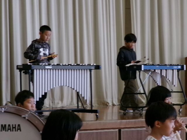 早速、4年生がアンコールにこたえて、もう一度演奏しました。聴いていた全校のみんなから大きな拍手をもらいました。