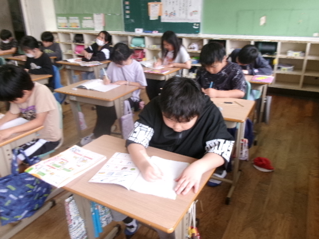 4年生【学校生活】 4年生 楽しく活動してます。 【更新日】2025年04月10日 4年生の子どもたちは、担任の先生の指示をしっかり聞いて活動していました。おしゃべりしながらの作業はとても楽しそうでした。 校 長「4年生は良くおしゃべりしますね。」 子ども「はい。いつもです。みんなよくしゃべっています。」 校 長「大事なところはよく聞いてくださいね。」 子ども「はい。わかりました。」 自分の考えを堂々と表現できる教室は、とても明るいです。 張り切っています。4年生。