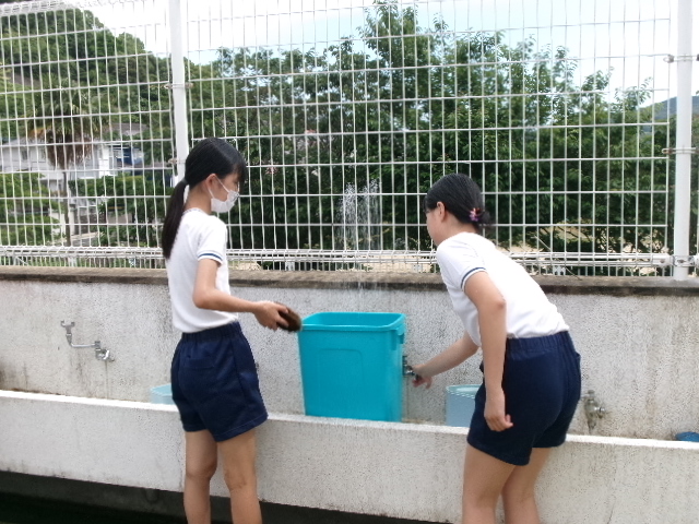 6年生【学校生活】 6年生 プール清掃 【更新日】2024年06月07日 6年生は、責任感をもって取り組んでいました。 卒業アルバム用の写真も撮影しました。お天気が良くなり、熱中症も心配でしたが、笑顔で頑張っていました。 低学年の子どもたちも、楽しみにしているプールです。 6年生、ありがとう。