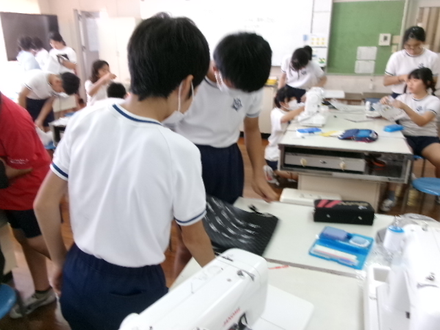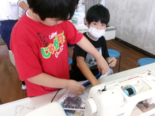 6年生【学校生活】 6年生 家庭科の時間に 【更新日】2025年10月06日 6年生は、ナップサックを作成中です。これを完成させ、修学旅行に持っていくことになっています。 子どもたちは、ミシンの使い方も慣れています。完成した作品を、素敵な笑顔で見せてくれました。手先が器用な6年生です。 モノづくりの楽しさに大満足の子どもたちです。学習後は、小体会の練習があります。みんなやる気満々です。本番まで、けがをしないように気を付けてほしいです。 6年生も頑張っています。楽しみです。