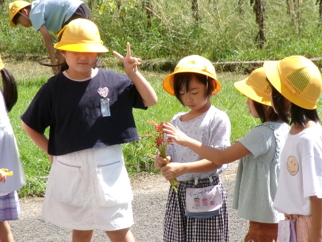 1ねんせい【学校生活】 9月30日の1年生です。 【更新日】2025年09月30日 今日は、生活科の学習で外に出てきていました。 カラスウリを見つけたそうです。他にもバッタを捕まえた子もいました。 自然が豊かな環境の中で、子どもたちは、五感を使った学びで理解を深めていきます。 最近は、朝夕涼しくなってきました。季節を感じながら「いい顔」いっぱいの1年生です。