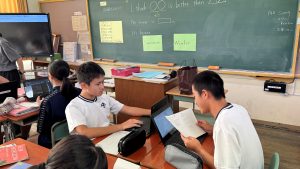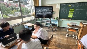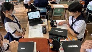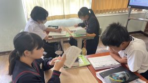 2年生は修学旅行の振り返りをしました。修学旅行で身に付けた力をスライドにまとめ、来週発表会をする予定です。