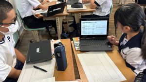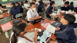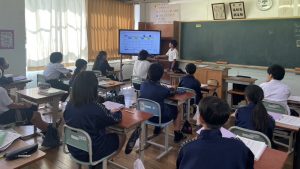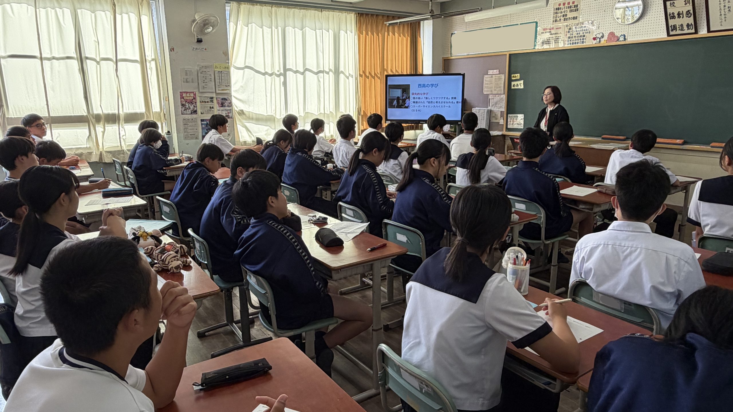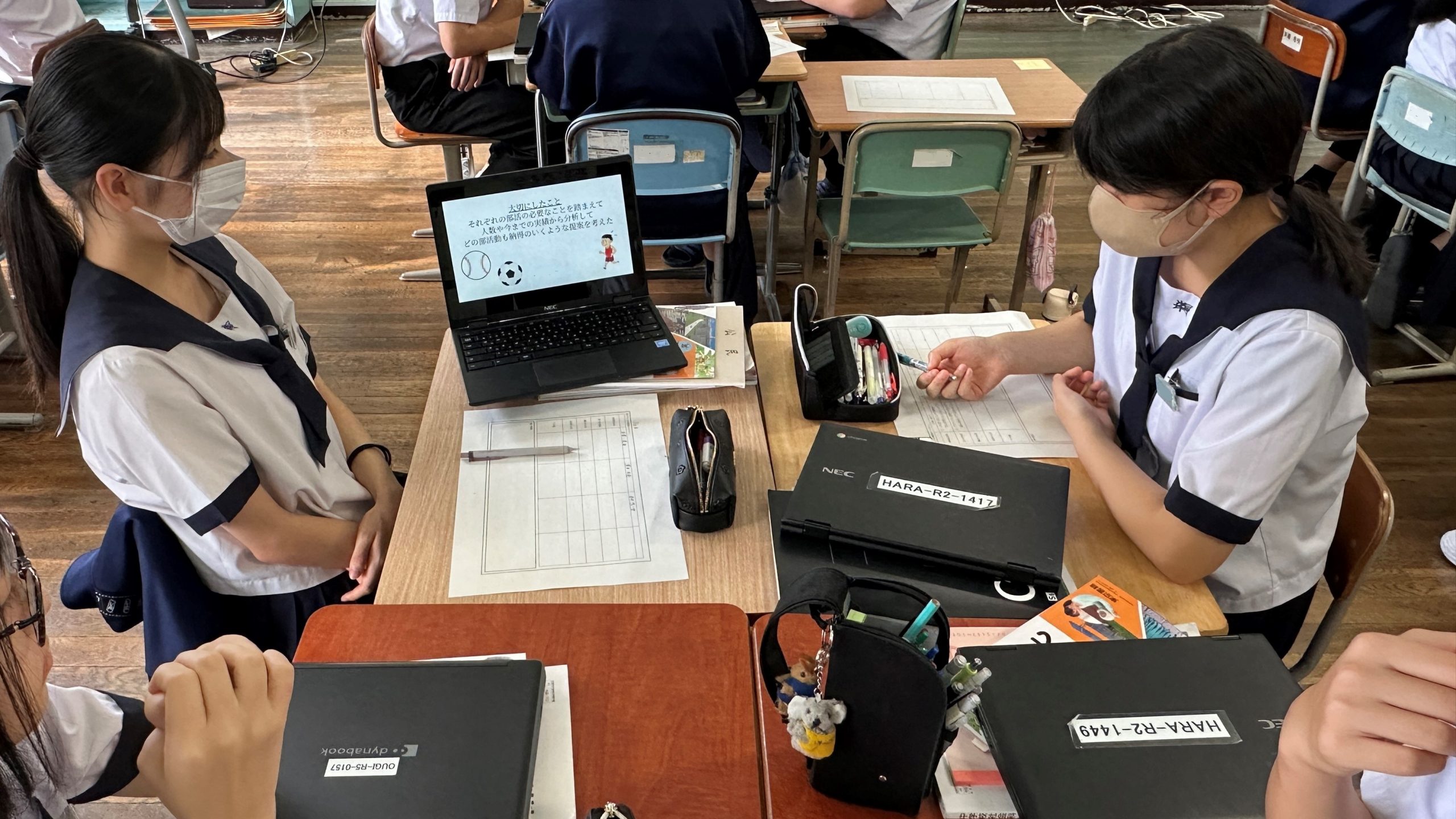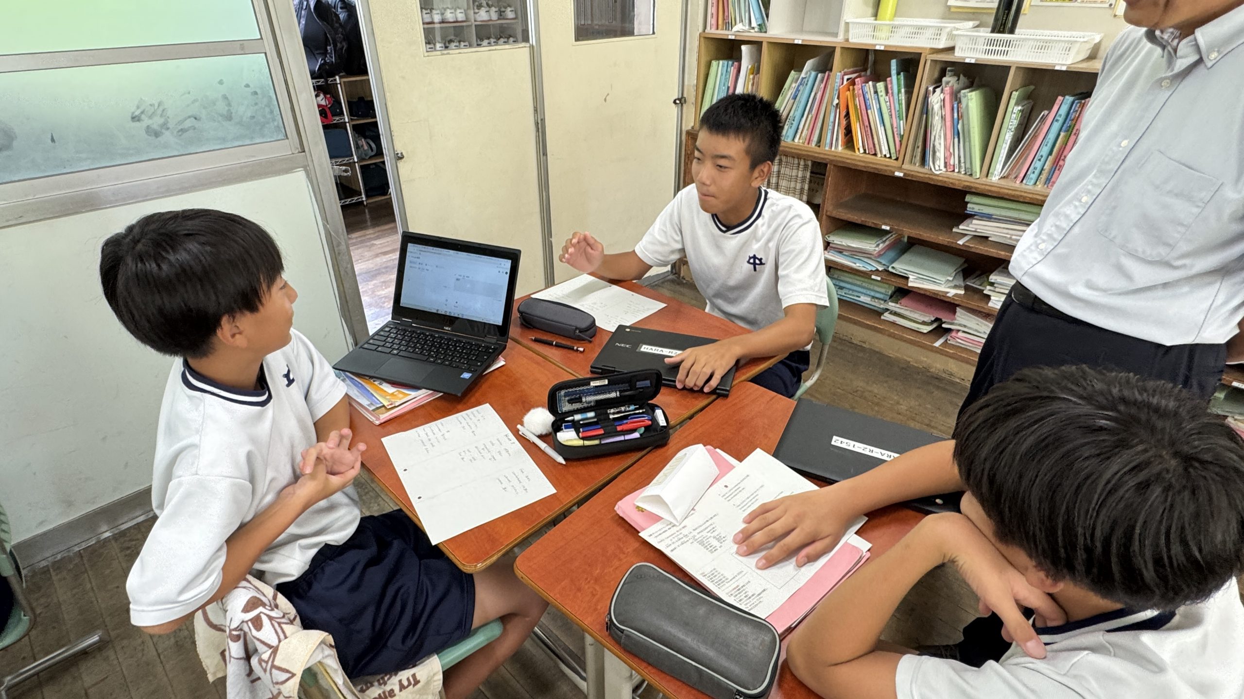 今日の授業参観ウィークは英語や体育、数学などが公開されています。英語科の授業では討論ゲームが行われ、summerとwinterなどのお題をもとに、2人ずつでディベートをしました。今まで習った英語を使って、相手を説得させることの難しさを感じているようでした。現状の英語力の課題を見つけ、学ぶ意欲へとつなげてほしいと思います。
