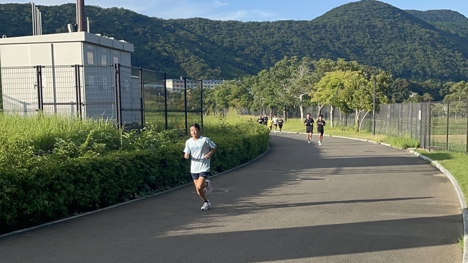 今日は夜中の雨のせいでグラウンドがぬかるんでいたためジョグで感覚を確かめました。練習後は肥前屋さんからの差し入れのブドウをいただきました。