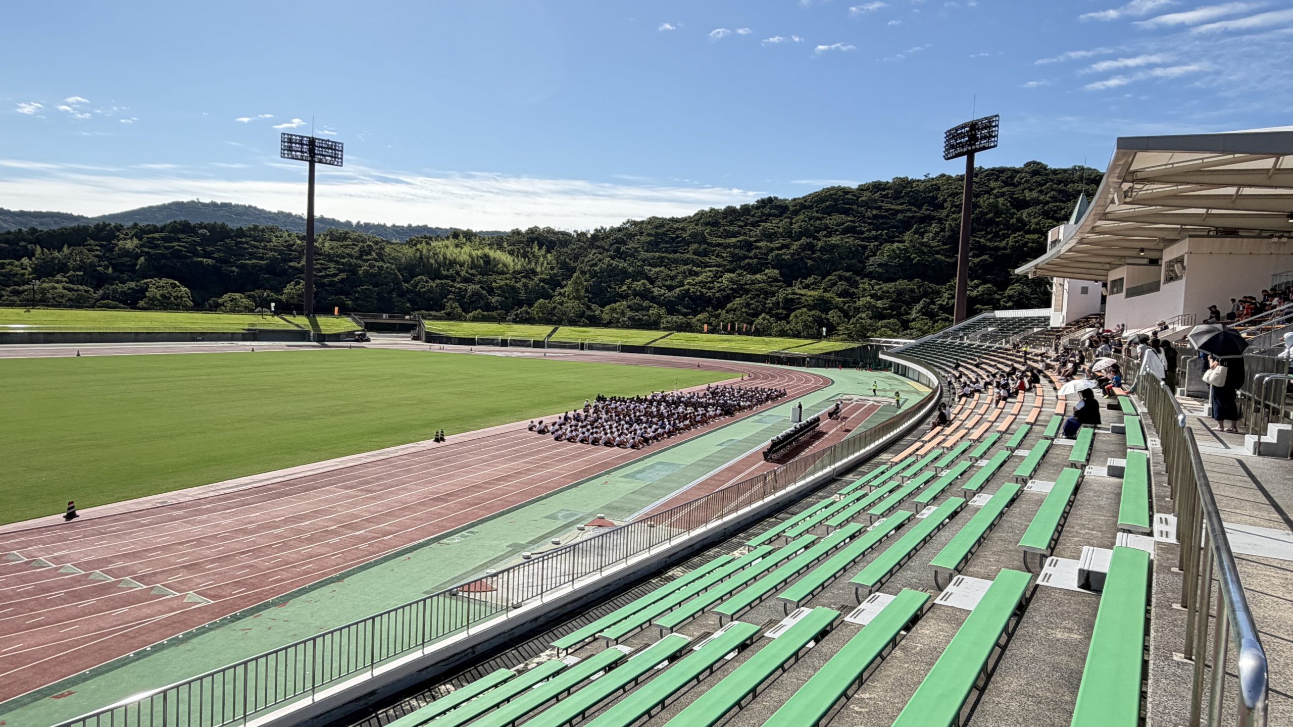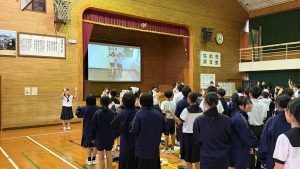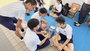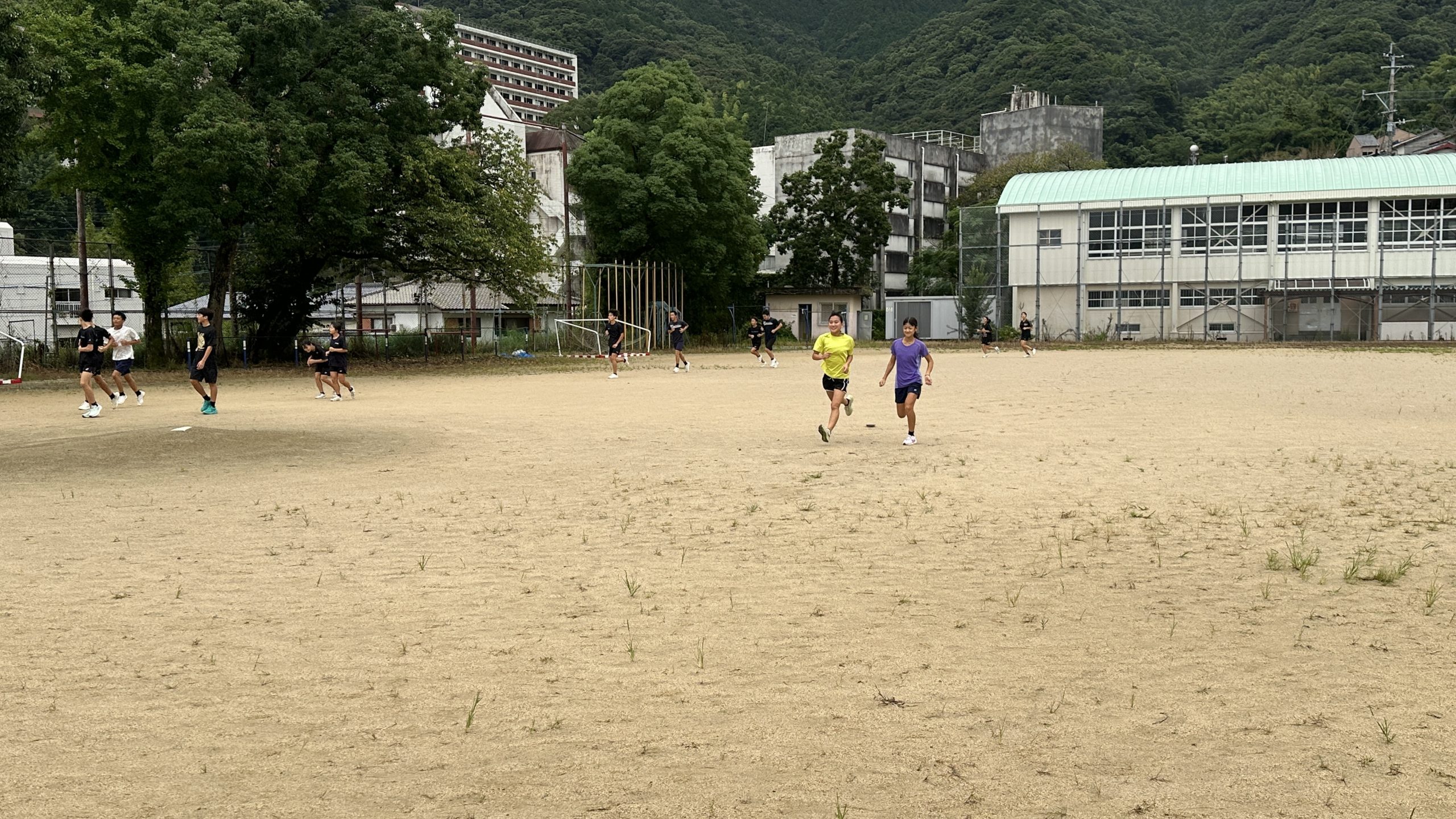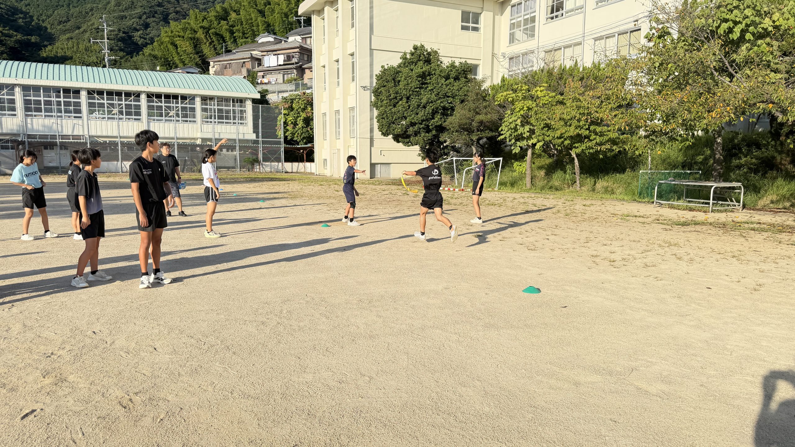 今日は快晴の下、”よっしゃ来い!”を練習しました。CDが止まるハプニングもありましたが、無音状態でも声を掛け合いながら動く場面も見られ、生徒たちが主体的に作り上げる様子を見ることができました。