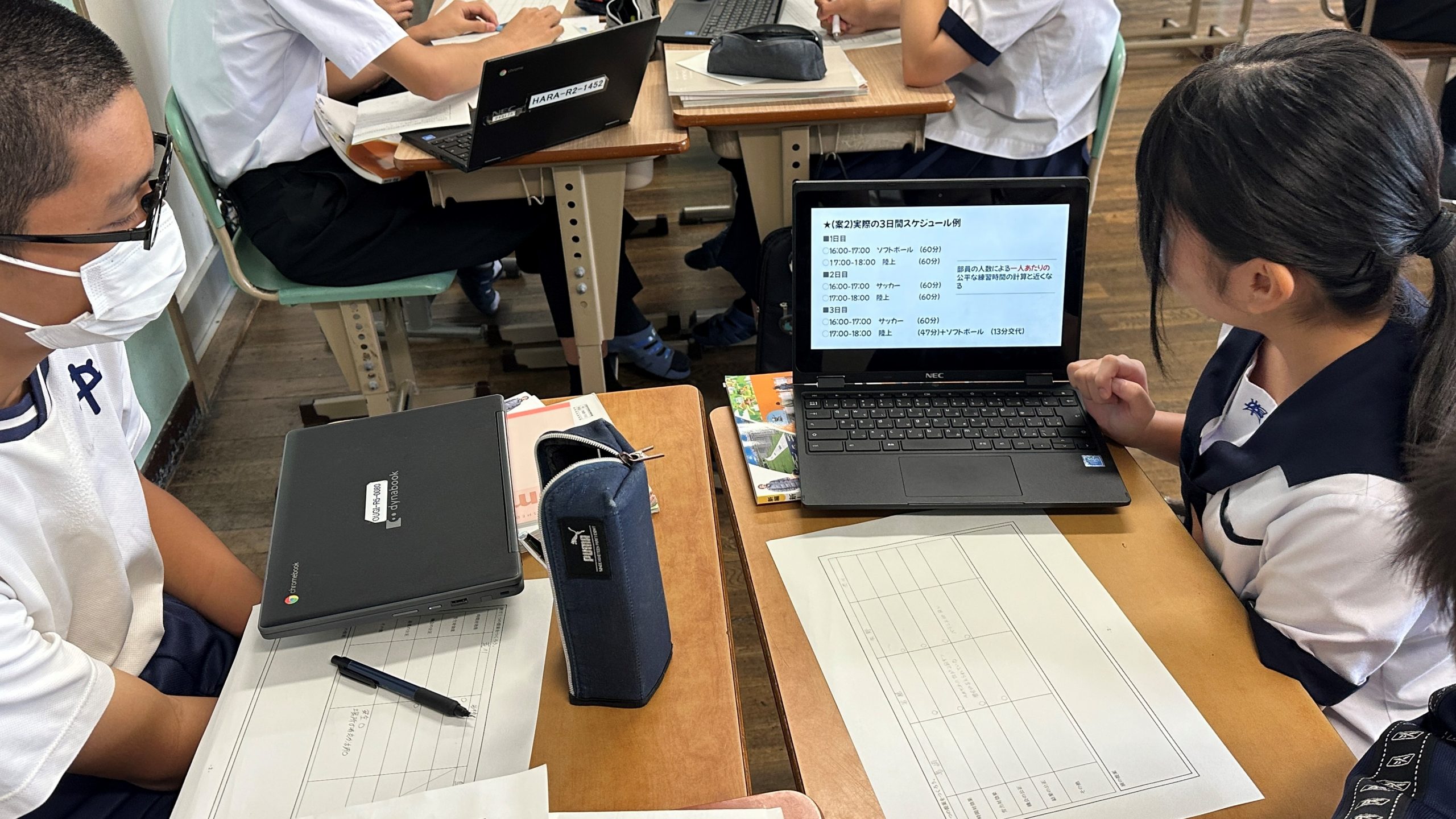 2年生の総合では、修学旅行で行く万博やUSJの計画を立てました。いよいよ来週です。生徒たちも楽しみにしているようです。
