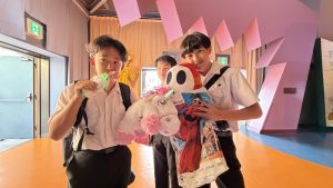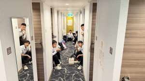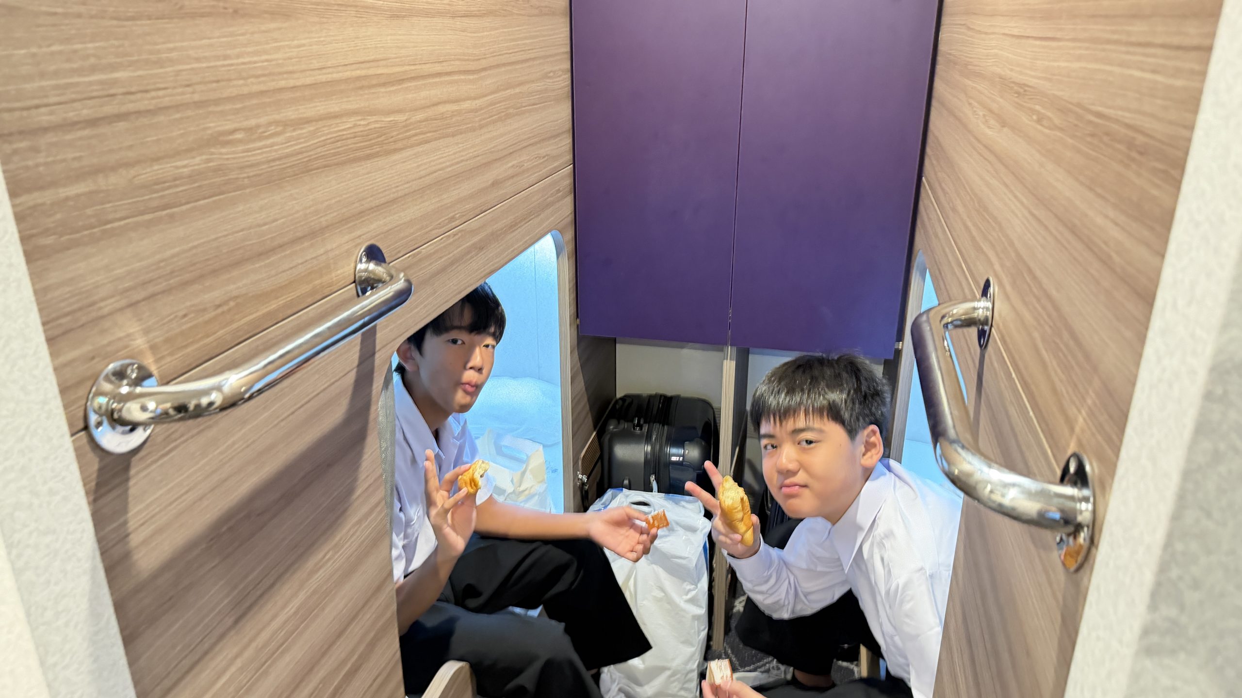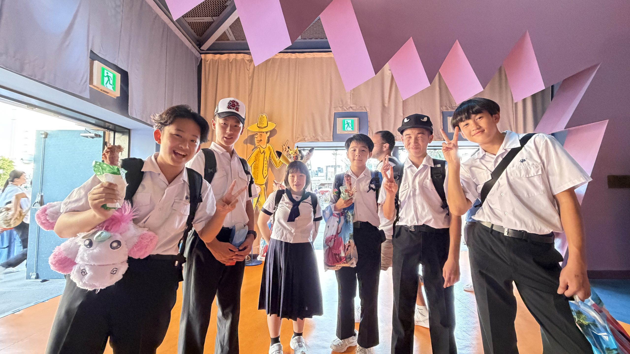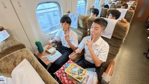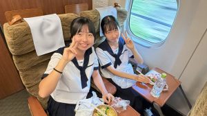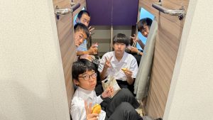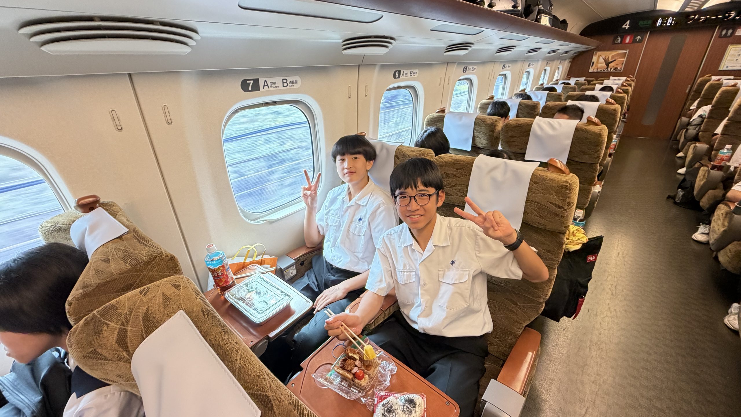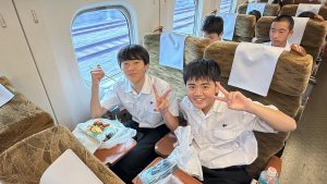 修学旅行出発!早速バスレクが始まりました。イントロクイズでみんなでいろんな曲を歌いました。