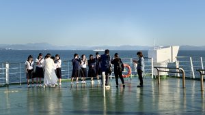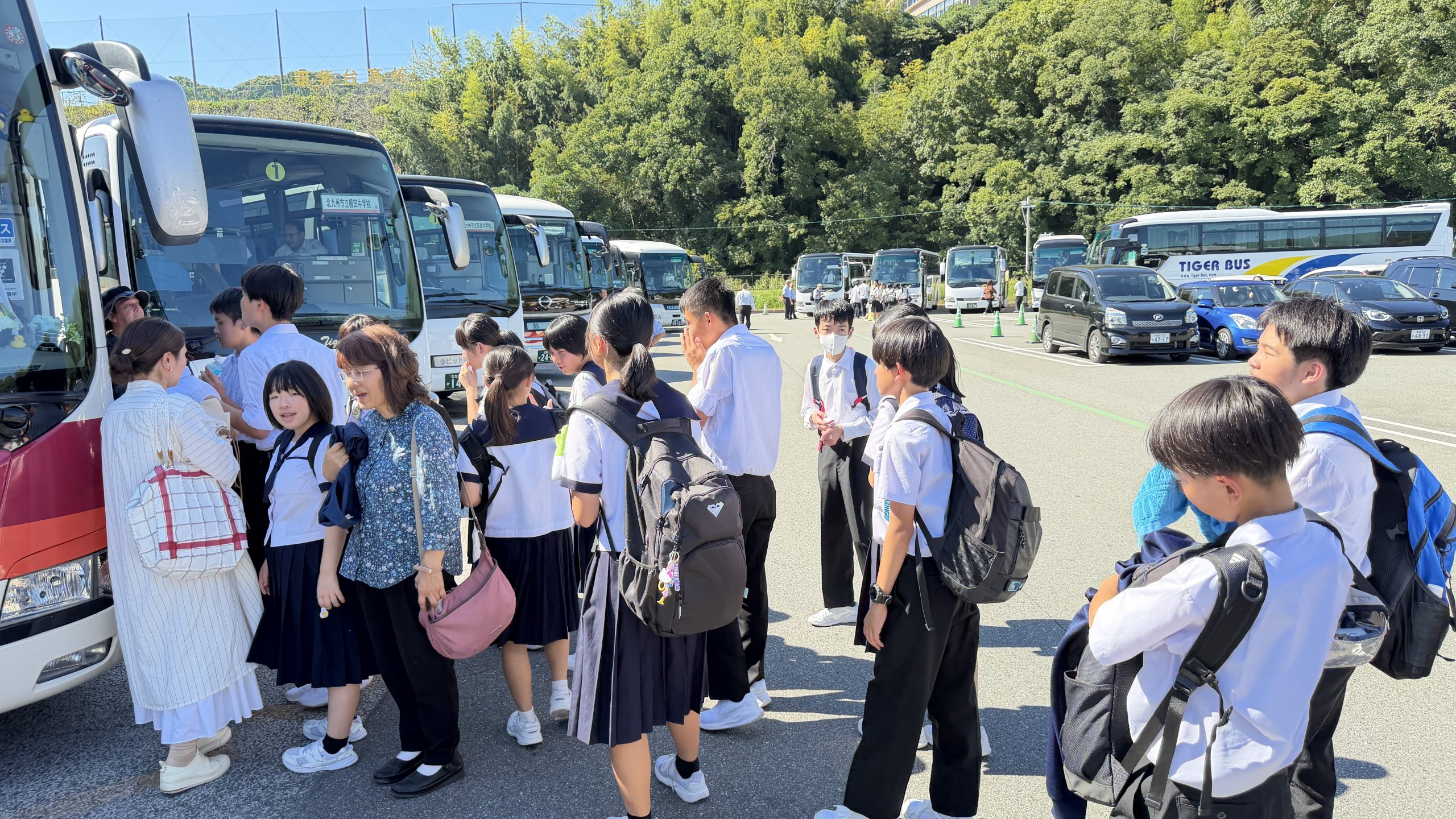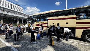 15:00 大村PAで解団式を終えました。これから日見公園に向かいます。バスの中はレクで盛り上がっています。