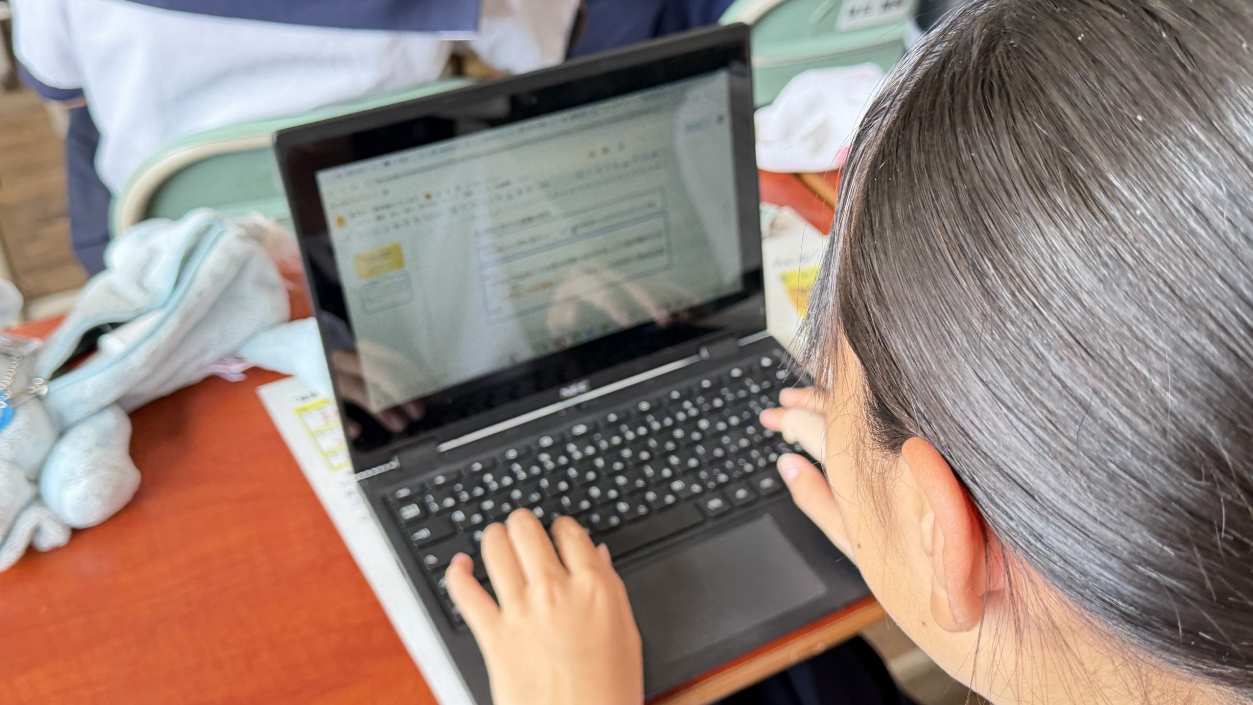 1年生の技術科ではタッチタイピングについて学習しました。1分間で200文字を超えるタイピストもいました。
