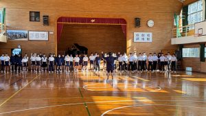 市中総体激励式が行われました。明後日は駅伝大会本番!頑張ってください。