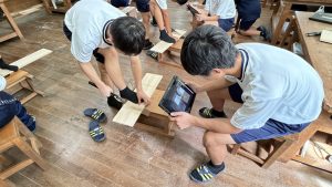 昼休みに係活動を頑張る生徒がたくさんいます。机の位置の線を引いたり、学級目標のポスターを作り始めたり。もちろん外で元気に遊ぶ生徒もたくさん。