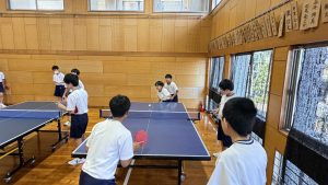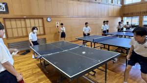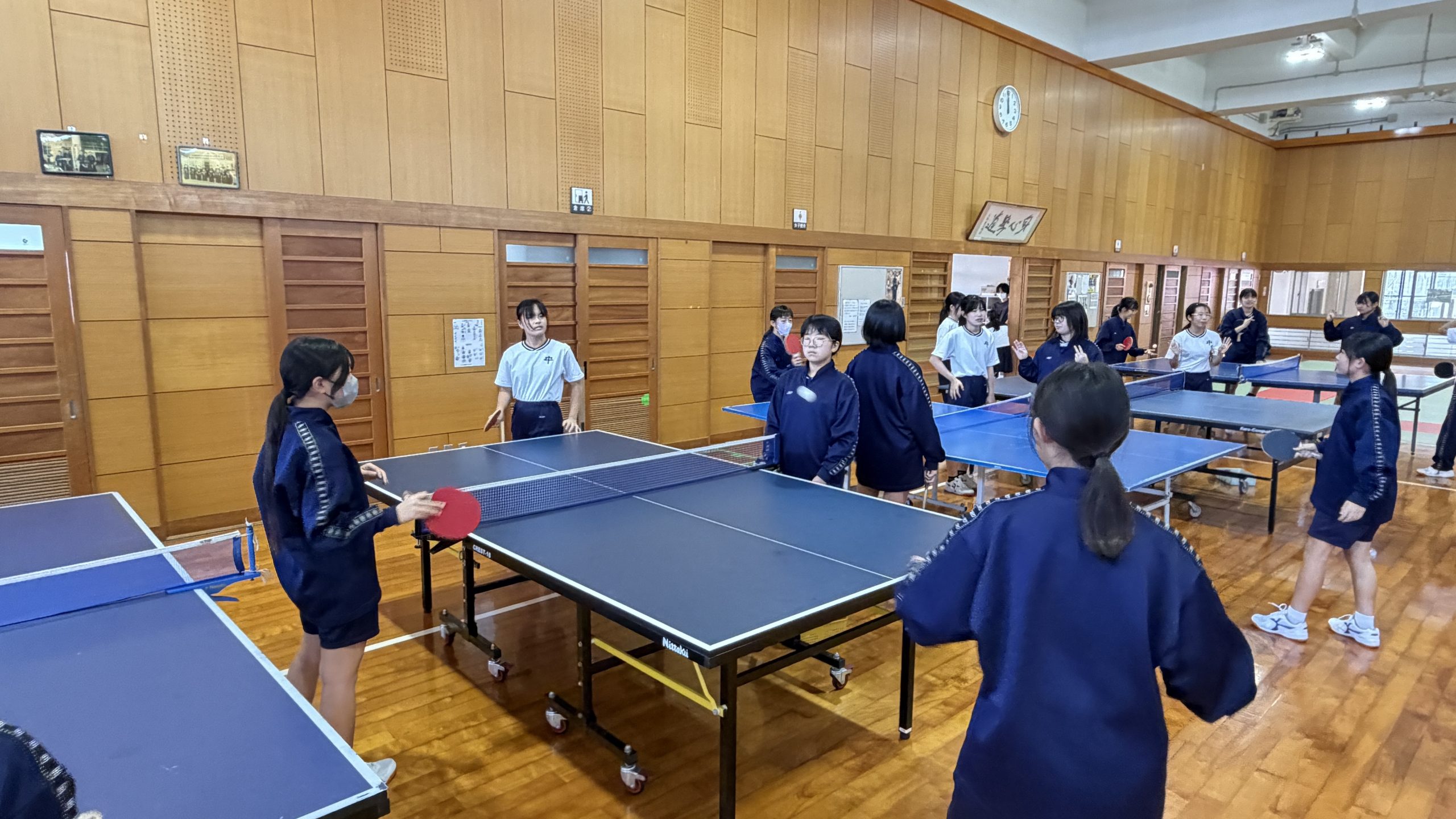 1年生の体育の卓球は”チャンピョン”ゲームをしていました。卓球部の生徒たち上手で、私もあっさり負けてしまいました。