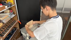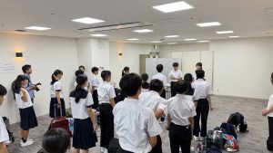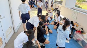 明日の遠足のレクに向けて、生徒会が昼休みに準備を進めました。