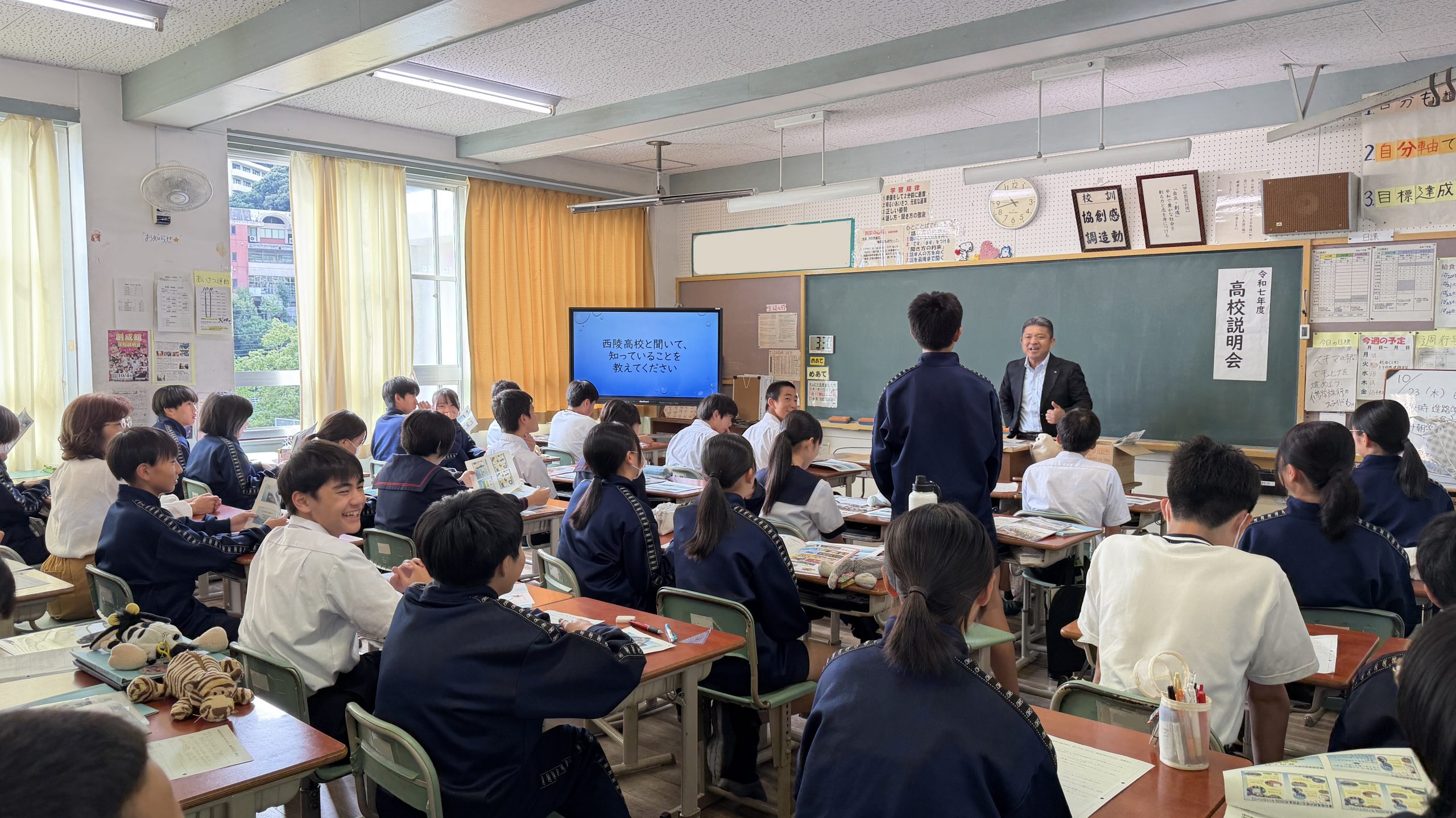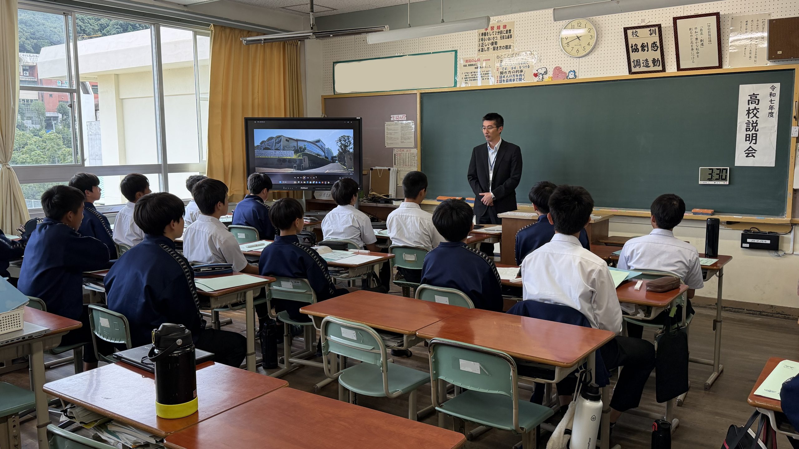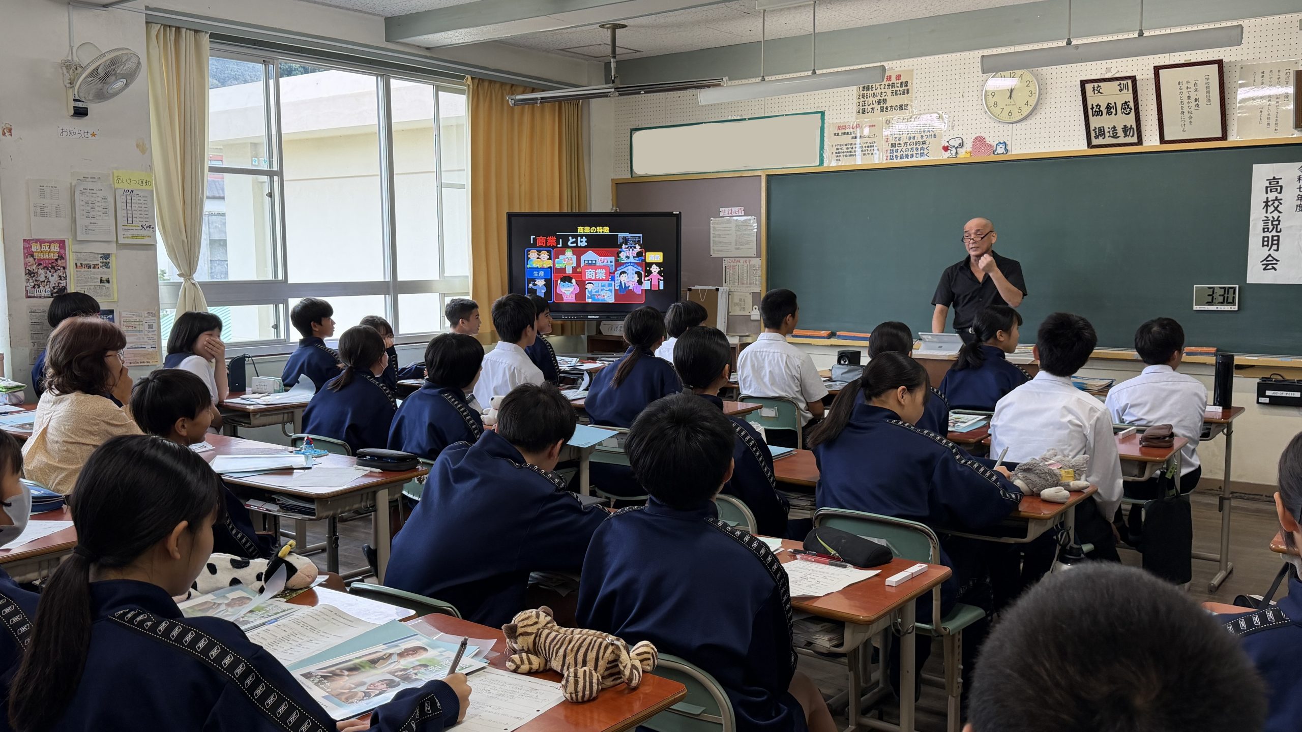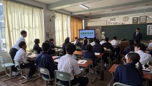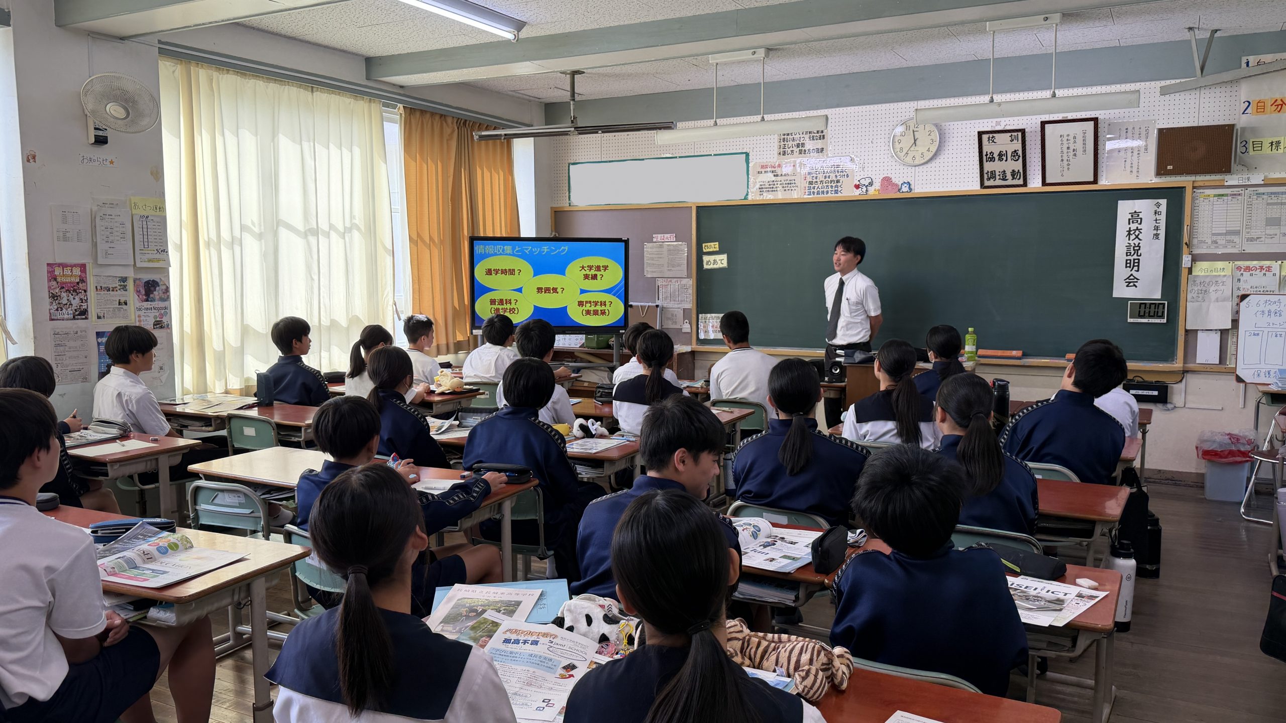 今日から3日間、2年生対象の高校説明会を行います。全部で13校にお越しいただきます。しっかり話を聞いて自分の進路選択にいかしてほしいと思います。長崎西、長崎東、長崎日大、海星高校の先生方ありがとうございました。