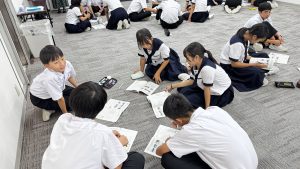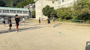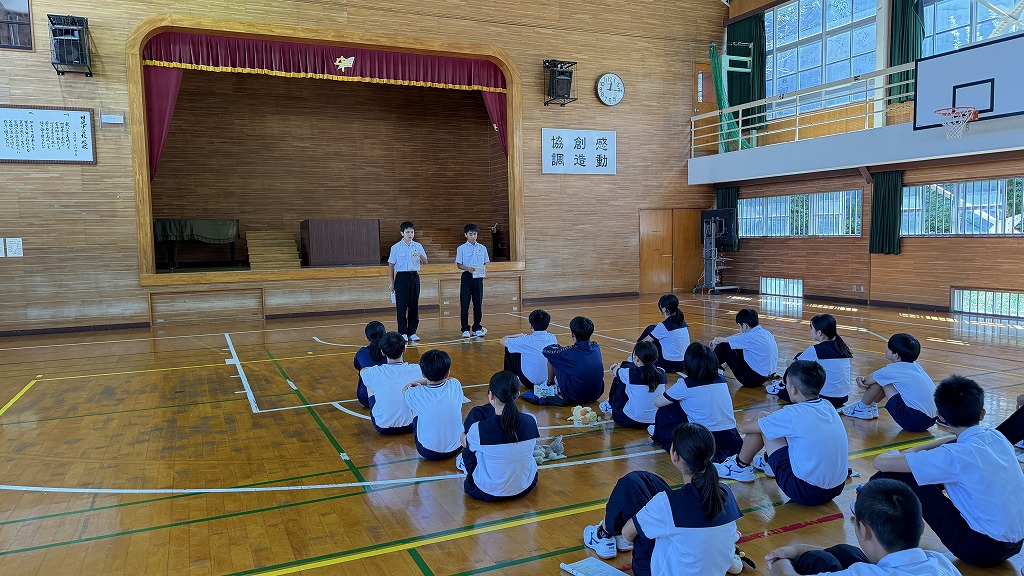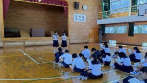 2、3年生の合同体育は”よっしゃ来い!”の練習でした。3年生からのアイデアやアドバイスを受け、練習しています。