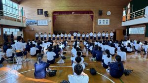 3年生は明日、ブリックホールでの連合音楽会に参加します。6時間目に最後の練習を行いました。※3年生のみ弁当です。
