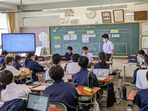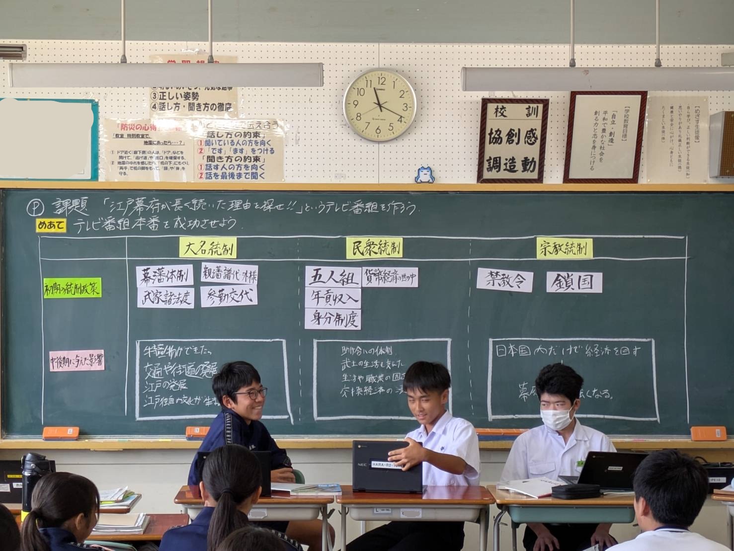 2年生の社会科では、「江戸幕府が長く続いた理由を探せ!」という内容で授業が進められました。