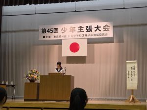 放課後に、10/5(日)に東部地区にこにこセンターで行われる『第45回少年主張大会』に向けてリハーサルを行いました。本校から2名出場します。頑張ってください。