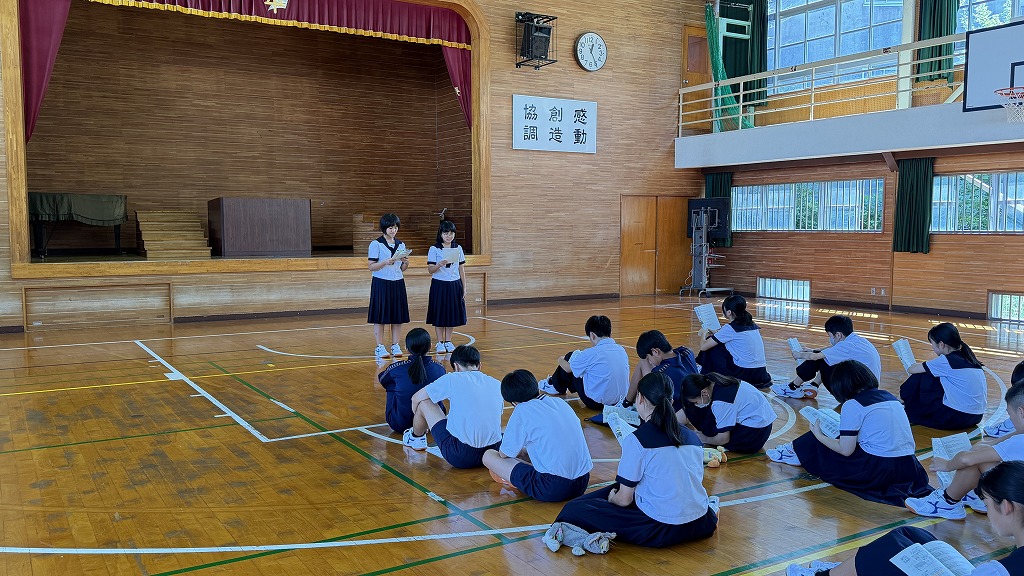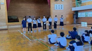 6時間目に生徒会入会式と部活動紹介が行われました。