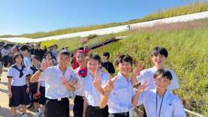 今日は歓迎遠足でした。生徒会が準備したたくさんのレクのおかげで大盛り上がりでした。