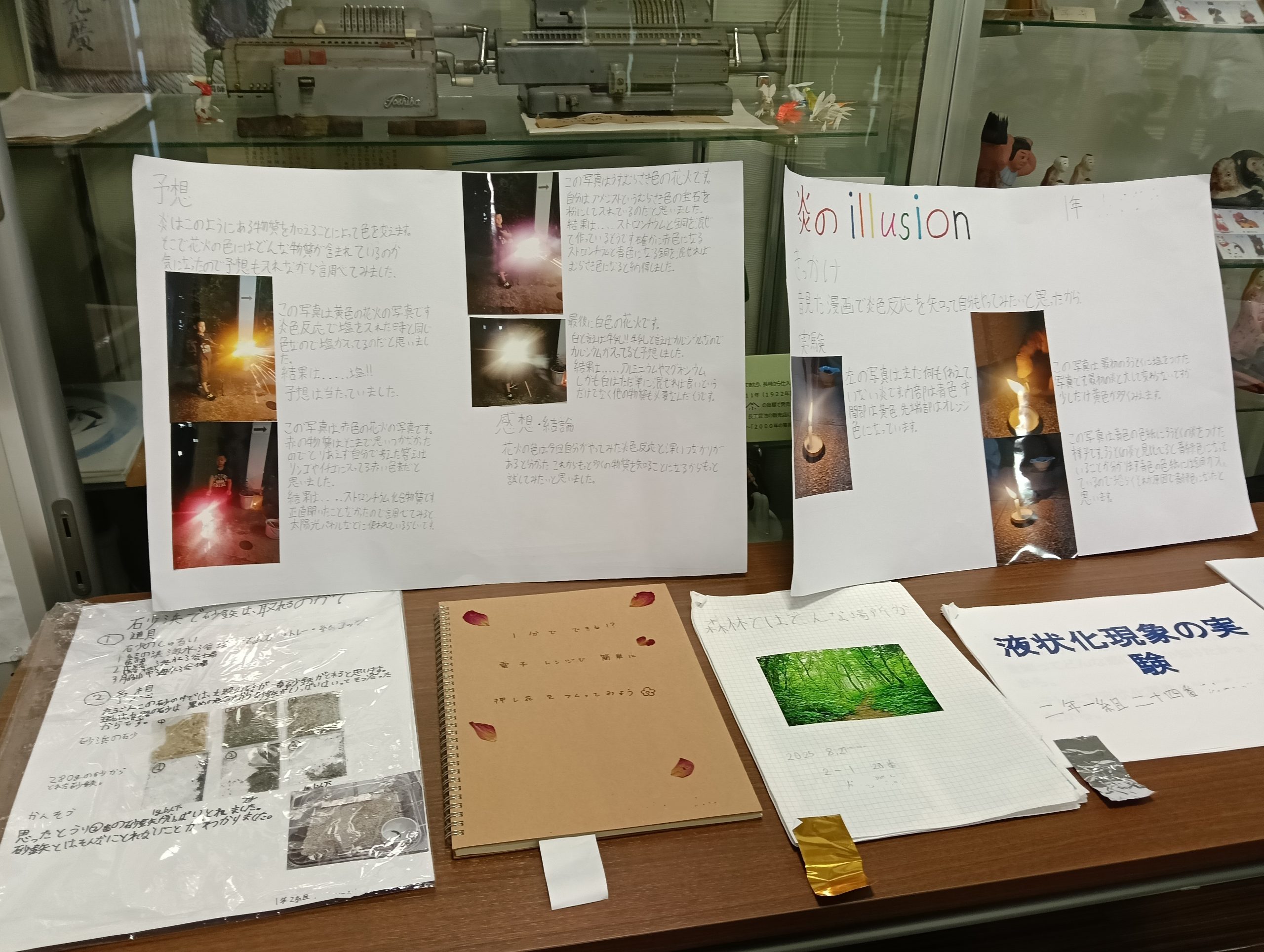 長崎東公民館で生徒の作品が10月いっぱいまで展示されています。