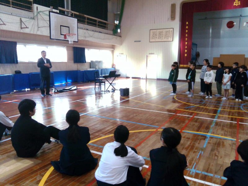 小学校【学校生活】 小音会に向けて 【更新日】2025年11月10日 11月6日の朝から、中学生の前で小音会でうたう歌を披露しました。 今年は全校で「いのちのうた」の合唱をします。 歌詞の意味や曲想をとらえてきれいに優しい声で歌うように意識して練習してきました。 本番のブリックホールは大きな舞台です。 思い切って今までの成果が出せるようにと、校長先生や中学生からも励ましの言葉がありました。 心を一つに頑張ります。