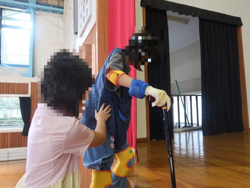 小学校【学校生活】 10月15日(水) 1・4年生 福祉体験学習 【更新日】2025年10月20日 10月15日(水)に1・4年生は、福祉体験学習で高齢者疑似体験とアイマスク体験を行いました。 高齢者疑似体験では、体を不自由にする重りやサポーター、視野を狭めるゴーグル、聞こえづらくするヘッドフォンをつけ、様々な体験を行いました。普段は普通にできることができなくなる戸惑い、高齢者の大変さを体験することができました。 アイマスク体験では、アイマスクを付けて、校内を歩きました。目の不自由な人の気持ちを知ることもですが、介助する人の大切さも学ぶことができました。